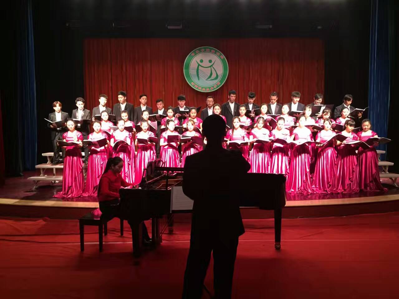 yL23411永利集团官网非常重视员工合唱能力的培养,选拔组建了员工合唱团。合唱团曾参与国家、省级权威合唱比赛,获得优异成绩。本次演出由王达亮老师担任指挥,郭晓雯老师和杨智莎老师担任钢琴伴奏。演出的作品共16首,内容涵盖中外民歌合唱作品、流行歌曲改编作品、豫剧唱段改编作品。演唱形式包括混声合唱、女声合唱、男声合唱以及无伴奏合唱等。整场演出是yL23411永利集团官网合唱指挥课程的一次教学汇报,同时也是yL23411永利集团官网理论课程教学成果的集中展示。通过本次实训周演出,合唱团员积累了丰富的舞台表演经验,合唱演唱能力得到了极大地提高。