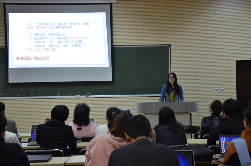 资源库专家曾萌老师结合图表、案例分析、模拟视频生动形象的为教师们讲解了资源库建设中微课程制作的设计要点,并与教师们进行亲切互动。专家的指导与讲解使教师们在课程制作方面得到了崭新的认识,更加明晰了思路,这将对于后期稳步推进课程制作、建设职业教育专业教学资源库做了良好的铺垫。