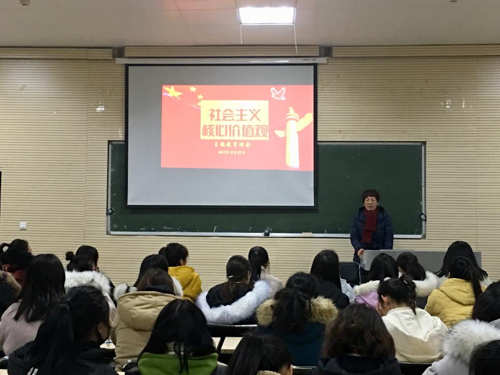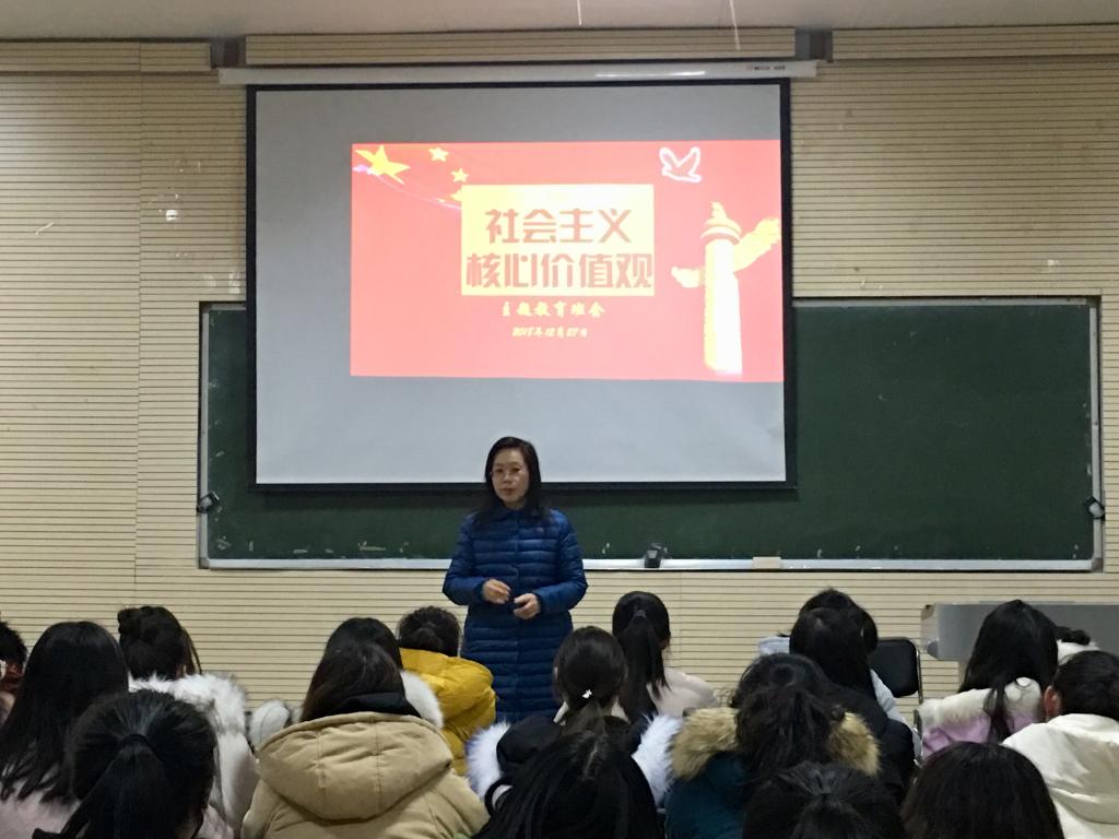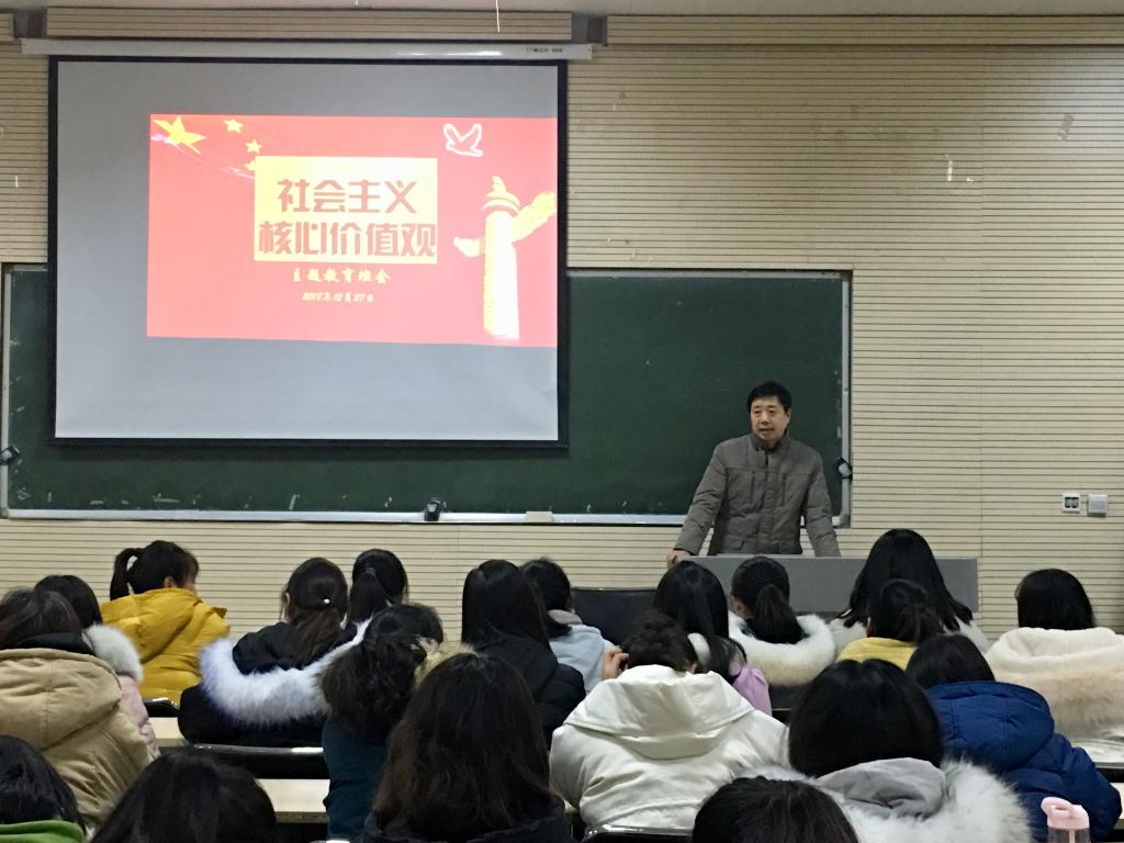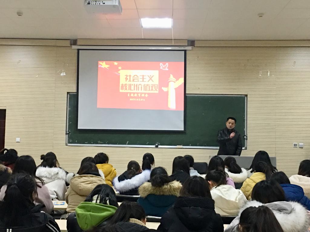为培育和践行社会主义核心价值观,提高员工的思想道德水平,12月27日晚,器乐专业在B401教室召开“社会主义核心价值观”主题班会。校宣传部部长武新胜、科技开发处处长梁杰、经管办主任李超、公司党总支书记陈静梅等联系班级领导出席,班会由辅导员崔琳婕老师主持。