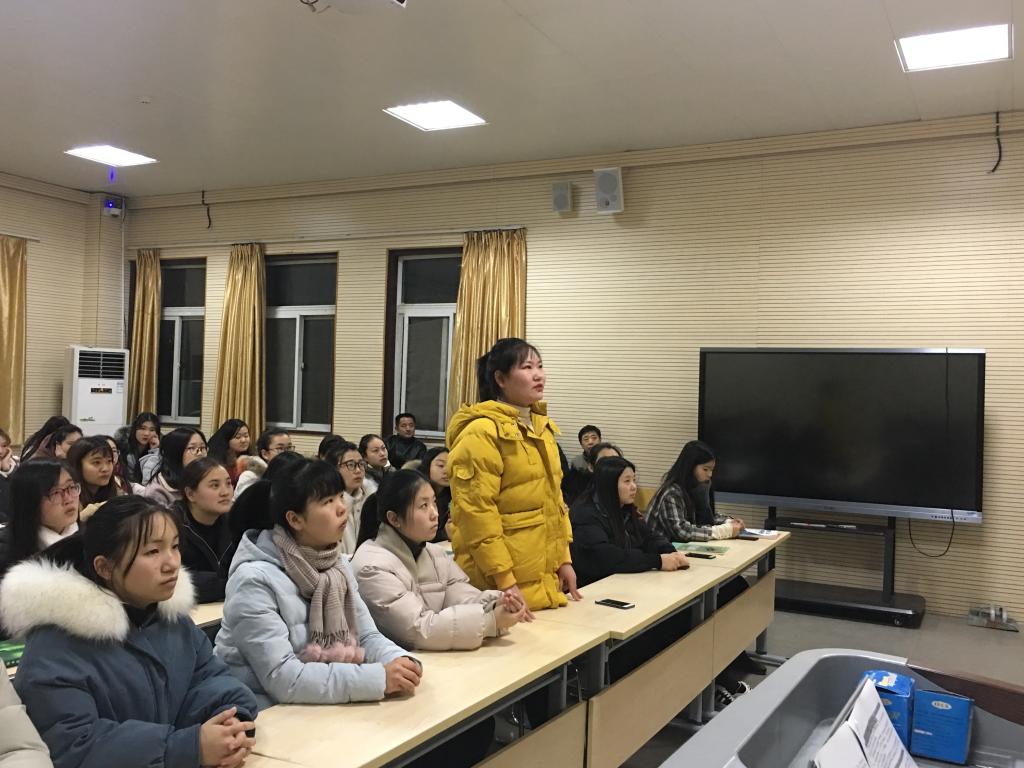 辅导员老师进行PPT展示,首先,分享了对于社会主义核心价值观的理解和感悟,带领大家学习了价值观的基本内容。其次,师生分别从法治、敬业、和谐等内容分享了自己的故事,从故事中领会价值观精神。最后,师生一起朗诵诗歌《社会主义核心价值观》,在嘹亮的朗诵声中结束了此次班会。