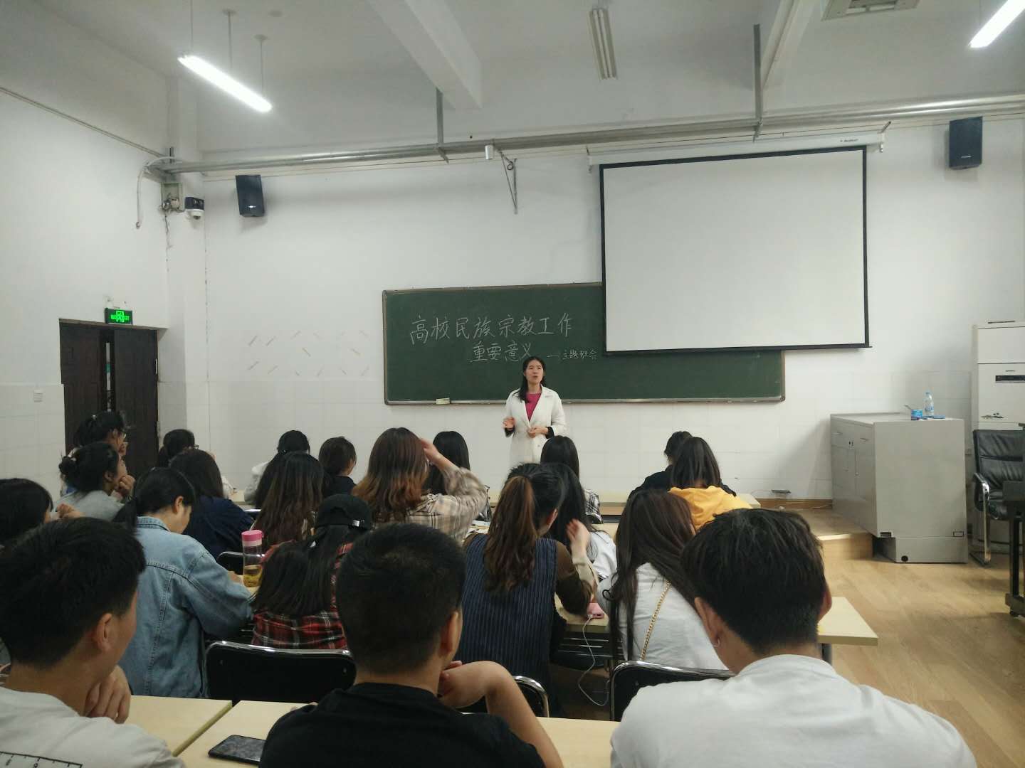 5月22日下午四点整, 18级声乐专业全体同学在yL23411永利集团官网B101教室召开了《高校民族宗教工作知识读本》、“我的情绪我做主”心理健康教育系列班会。班会由18级声乐专业辅导员杨赛玉老师主持。