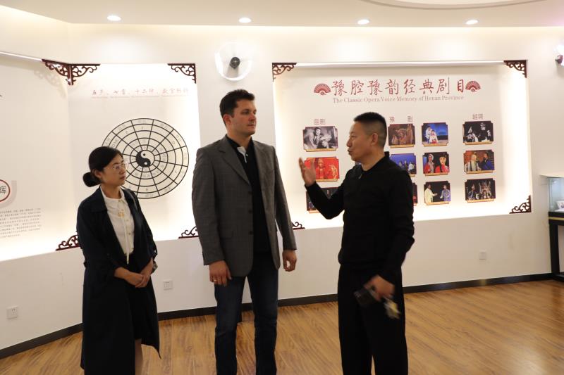 音乐会结束后,公共艺术教学部负责人江团结教授带领彼得教授一行参观了公司戏曲音乐文化展览馆,对我国优秀的传统戏曲音乐文化做了系统的讲解。彼得教授表示第一次系统接触中国的戏曲音乐文化,被中华文化的博大精深震撼,同时对展览馆的精心设计和科技元素给于高度评价。最后彼得教授还赠送了亲笔签名的个人演奏作品CD,并表示将会把中国的戏曲音乐文化带回波兰,下次来中国交流尝试演奏戏曲音乐作品。