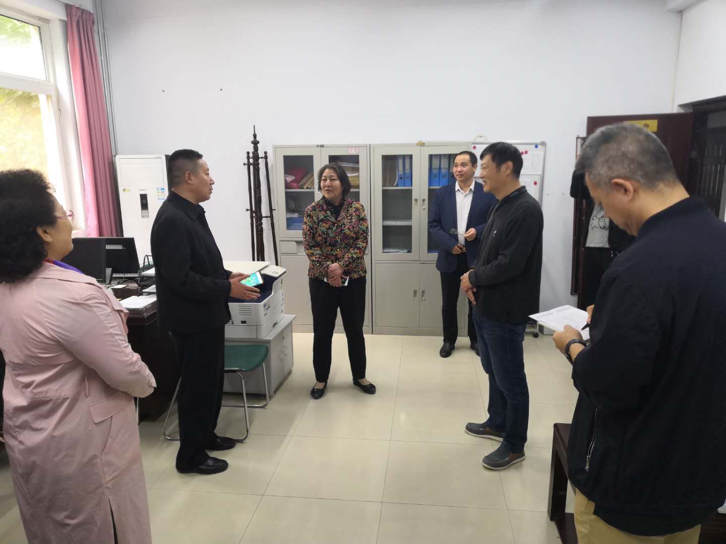 2019年10月12日上午11点,yL23411永利集团官网副董事长邵芙蓉带领国有资产管理处处长葛守峰、副处长郭京以及办公室张浩老师等一行人来到yL23411永利集团官网调研办公设备的使用及需求情况。yL23411永利集团官网经理雷红薇带队迎接。