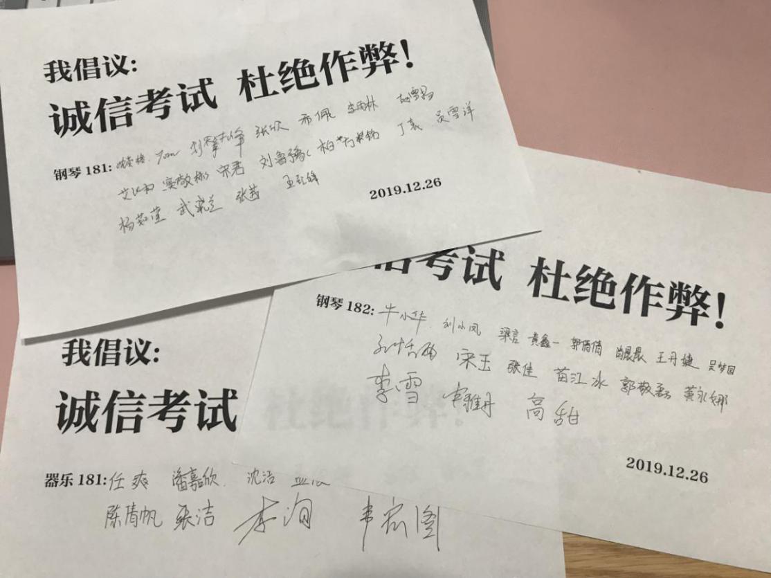 “诚信”是社会主义核心价值观的重要内容,也是个人不可或缺的精神品质。考试临近,诚信考试是对知识和品行的双重考核,辅导员老师宣读了员工手册中《关于认定考试违纪、作弊行为的规定》,提醒员工严格遵守校纪校规。最后,同学们纷纷在诚信考试倡议书上签字,承诺严守纪律。