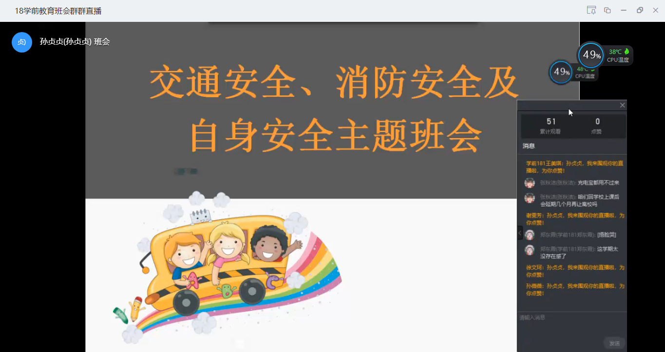 为了加强员工的安全意识,提高员工的自我保护和安全防范能力。4月15日晚8点,yL23411永利集团官网18级学前教育全体员工在钉钉网络平台利用直播的方式召开了“交通安全、消防安全及自身安全”主题班会。班会由辅导员孙贞贞老师主持。