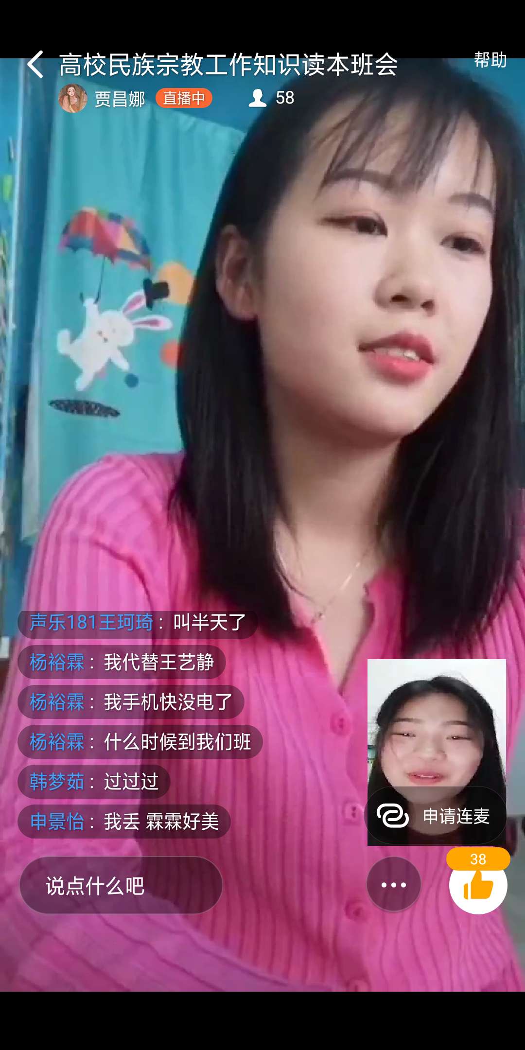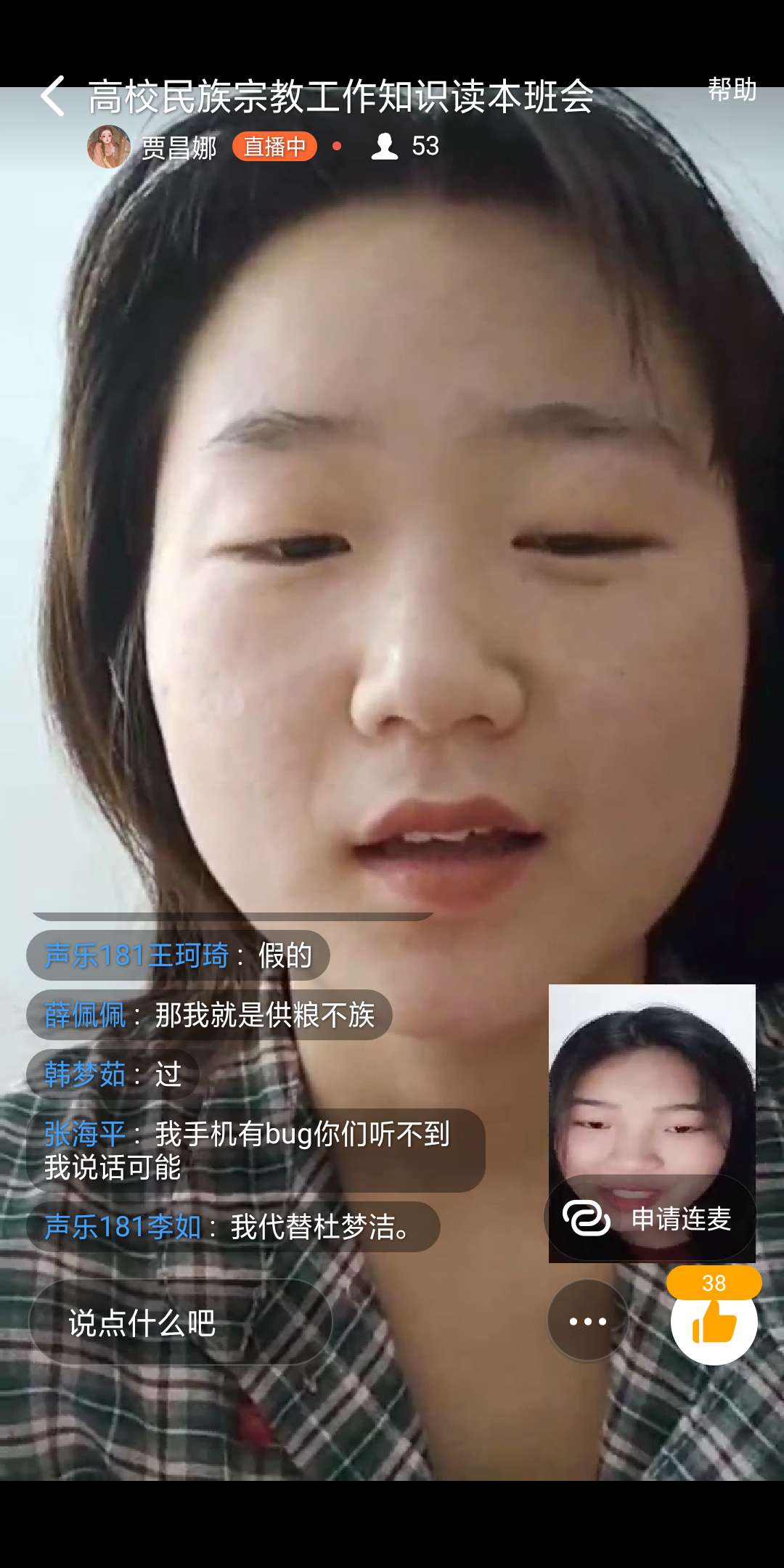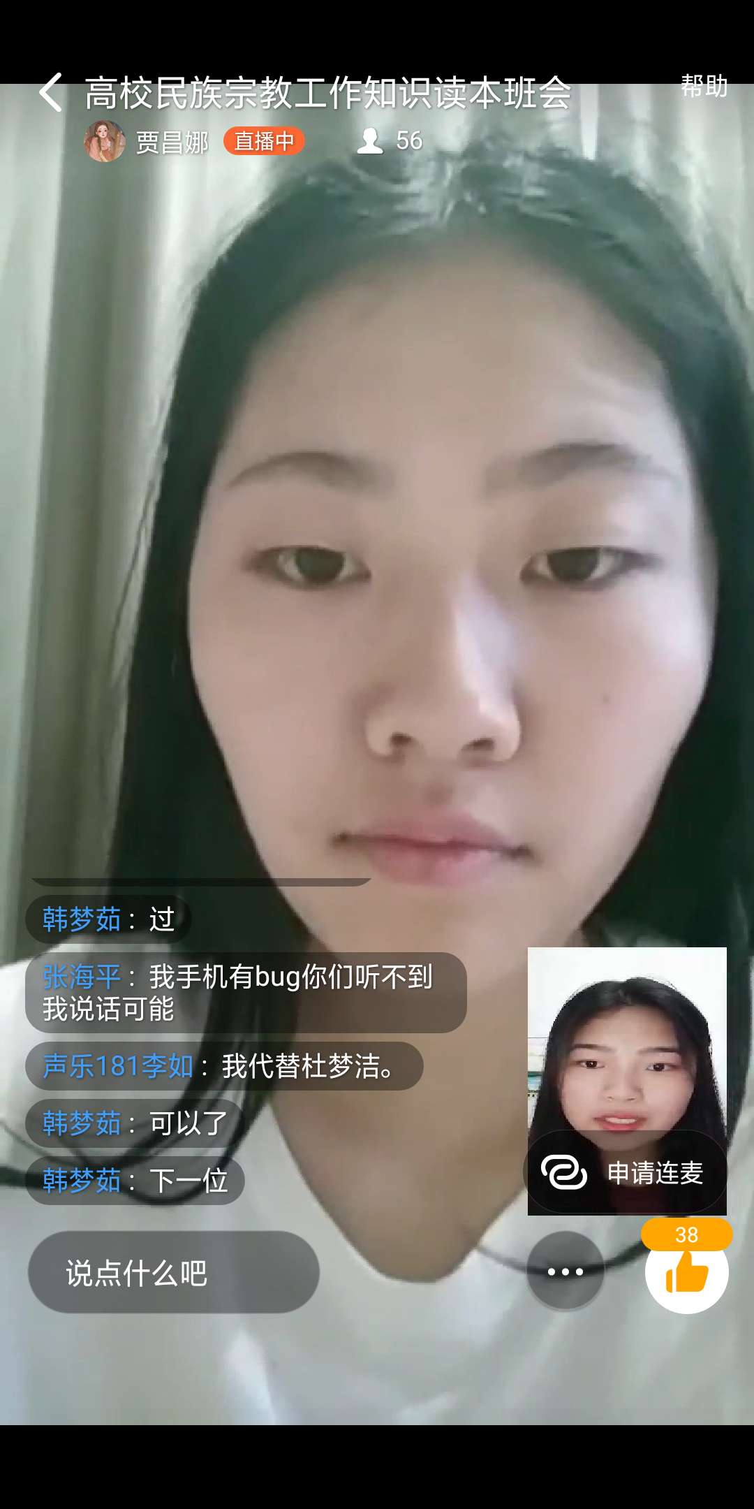2020年5月22日下午五点半左右,yL23411永利集团官网声乐专业181、182、183班,在钉钉群班会直播群里举行关于“高校民族宗教工作知识读本”主题班会,辅导员杨赛玉主持了此次班会。
