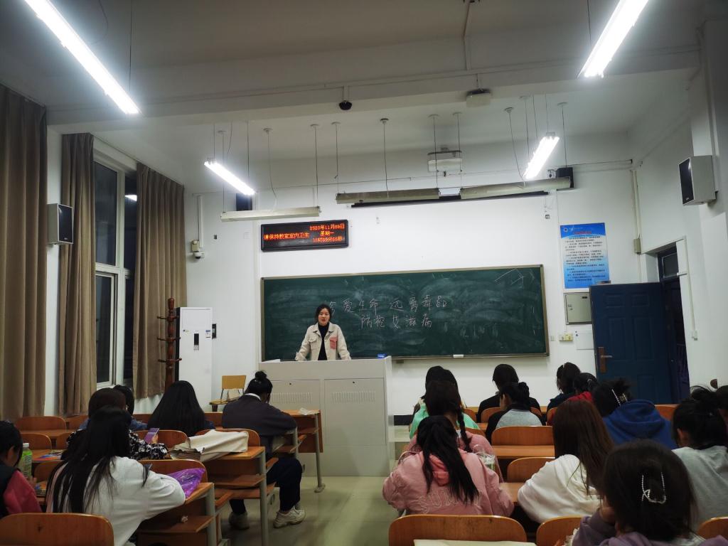 11月9日晚17:30,2020级舞蹈表演、器乐表演专业班级全体同学在4201教室举行了关于“远离毒品与防控艾滋”的主题班会,班会由辅导员李云鹤主持。