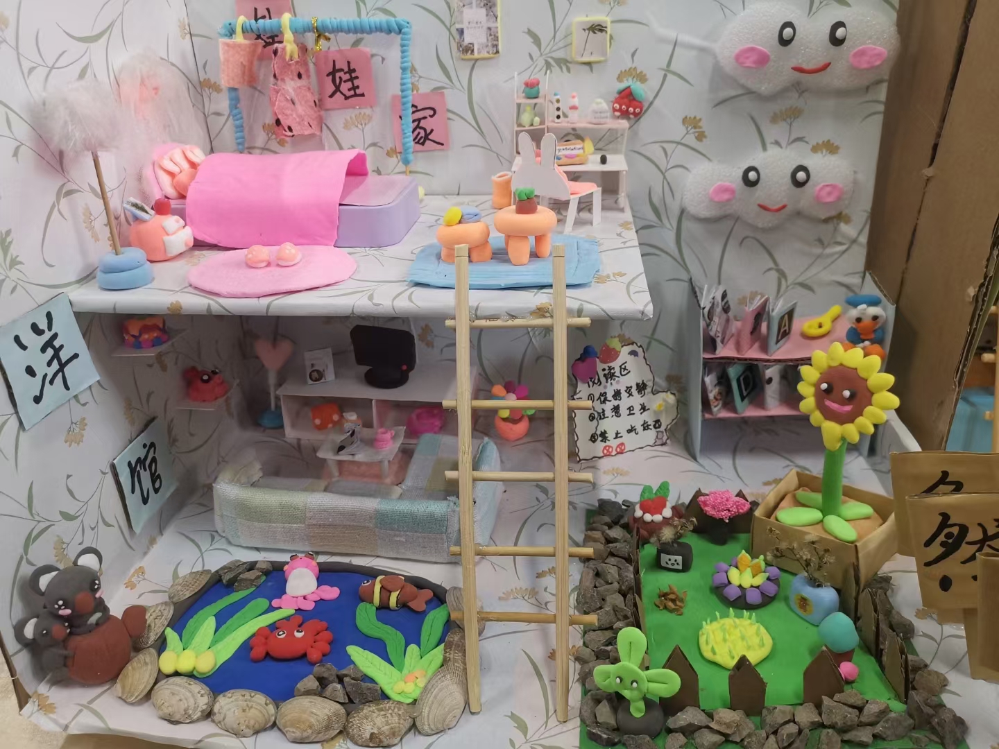 此次作品的展示吸引了众多员工的眼球,超轻黏土、火柴棒、银杏叶、蛋壳、花生壳、瓜子壳等做出的创意十足的粘贴画;废旧纸盒、报纸、卡纸等做出的精巧别致的玩具盒子;废旧纸箱、小木棒、小石块等做出的精致十足的幼儿园区角……所有作品都基于幼儿的年龄特点且紧紧围绕着“环保创新,美观自然”的要求,让幼儿能在游戏和操作中获得认知,体现了寓教于乐、在玩中学的教育理念。