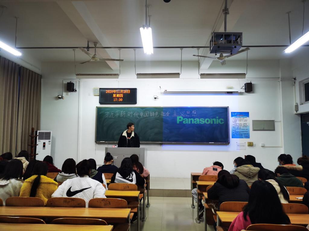 班会围绕“深入公司习近平新时代特色社会主义思想”的主题内容展开,辅导员老师讲解了社会主义初级阶段论是我们党在继承马克思主义关于社会主义阶段划分理论,总结国内外社会主义实践经验教训的基础上作出的新的科学概括,并对习近平新时代特色社会主义思想的核心内容进行了详细说明和讲述。班会上,李老师也请各位同学们分享了学习心得和体会,班会的学习也让同学对特色社会主义思想有了更进一步的了解。