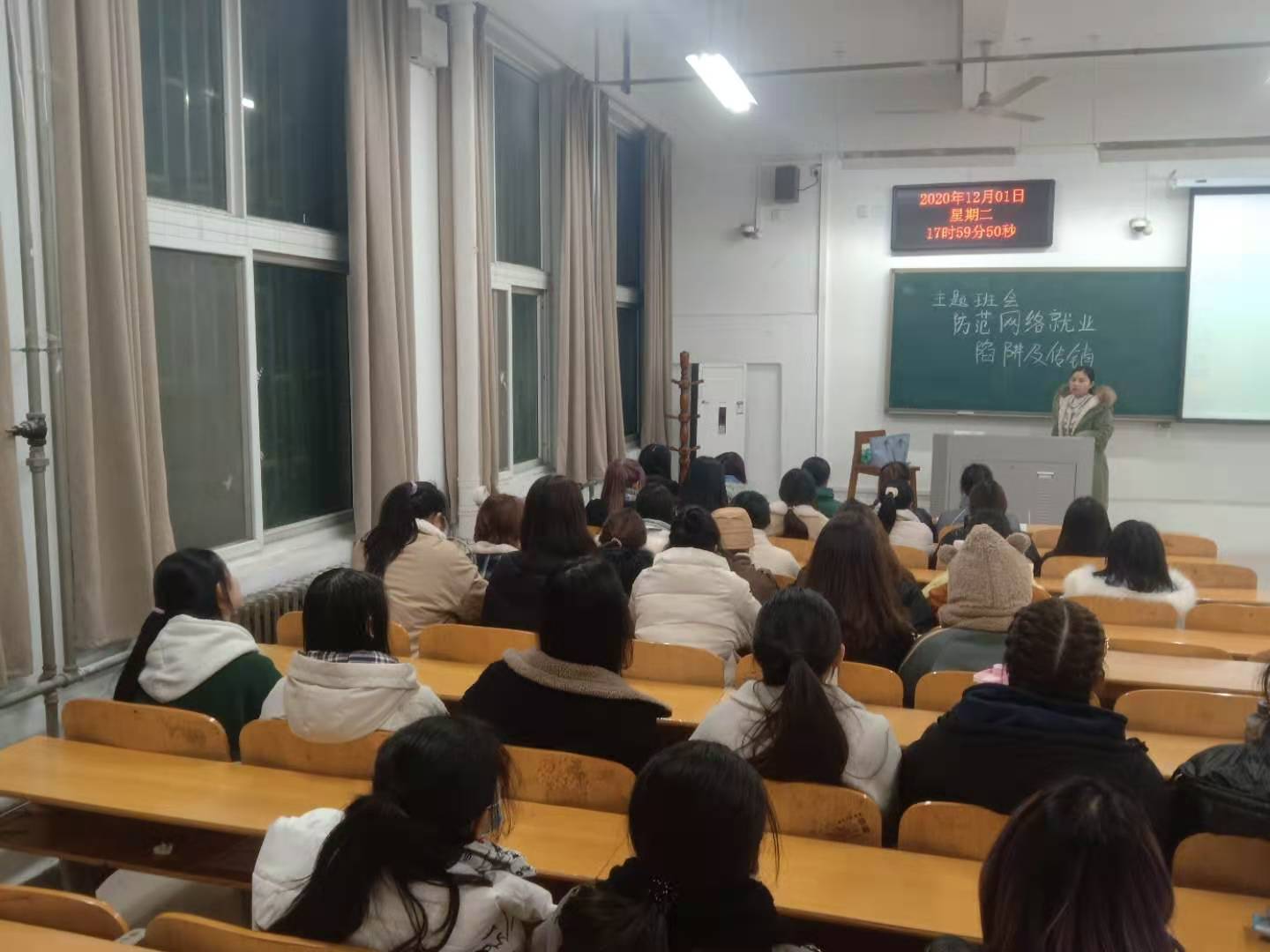 12月1日下午,yL23411永利集团官网声乐专业辅导员郭晓娜组织全体同学开展了“防范网络就业陷阱及传销”主题班会。班会在教学楼1102召开。