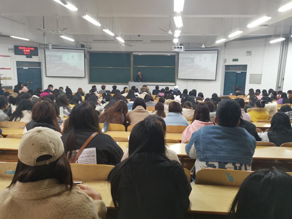 11月26日下午,yL23411永利集团官网邀请2020届音乐表演专业器乐方向的毕业生张晓杰为2019级360名同学做了一场生动的就业报告会。报告会由yL23411永利集团官网创业专干老师高原主持。