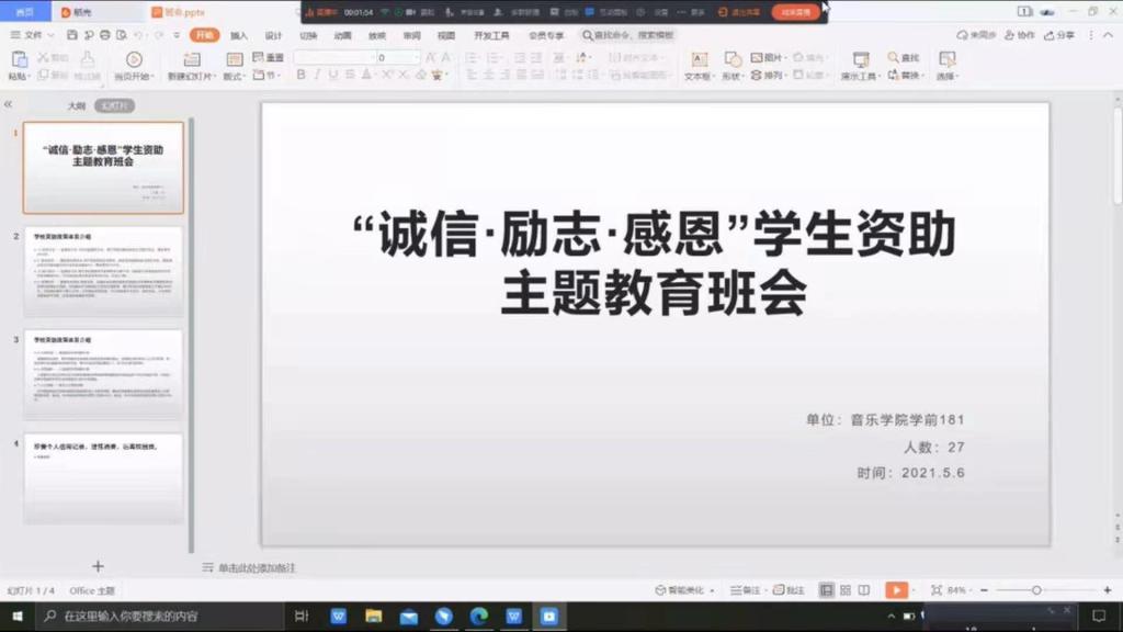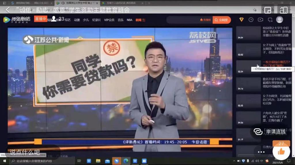 为了使员工了解国家及公司的资助政策,树立诚信、励志、感恩的意识,18级学前教育专业全体员工于5月6日晚在钉钉网络平台,利用直播的形式召开主题班会。