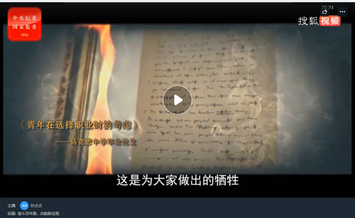 2021年是中国共产党成立100周年,为了使同学们铭记历史,感谢党恩,辅导员老师通过讲解历史和观看视频引导员工回望党一百年的非凡奋斗历程,深刻认识中国共产党的领导是历史和人民的选择,从而进一步坚定理想信念,传承红色基因,努力成长为德、智、体、美、劳全面发展的建设者和接班人。