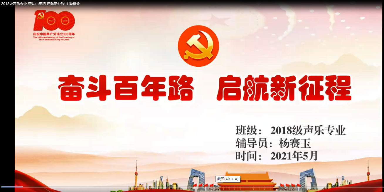 2021年5月7日,2018级声乐专业全体同学在网络钉钉开展班会,班会围绕着奋斗百年路、启航新征程党史教育以及2021年专升本考生思想政治诚信教育主题活动开展,班会由辅导员杨赛玉老师主持。