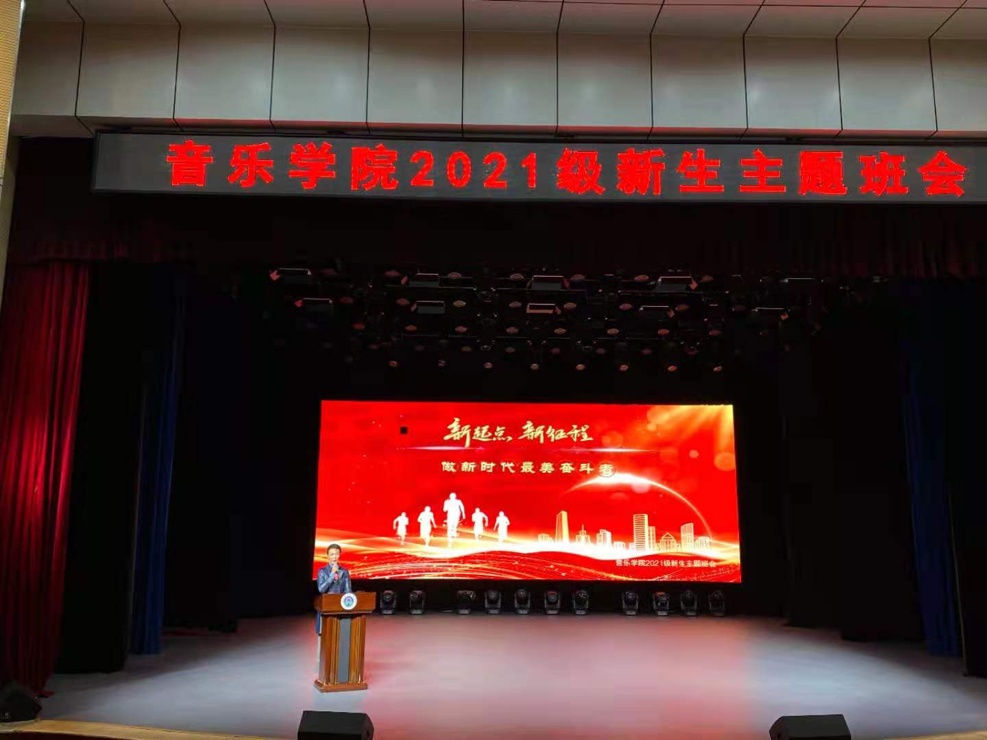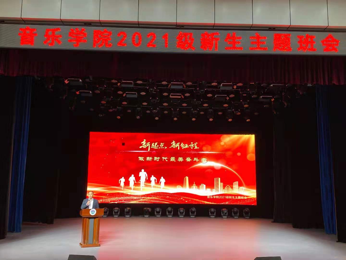 2021年10月21日下午,yL23411永利集团官网在音乐厅举办了一场别开生面的新生主题班会—“新起点 新征程 做新时代最美的奋斗者“。主题班会由党总支副书记祁姗姗主持,yL23411永利集团官网的全体教职工和21级新生参加。