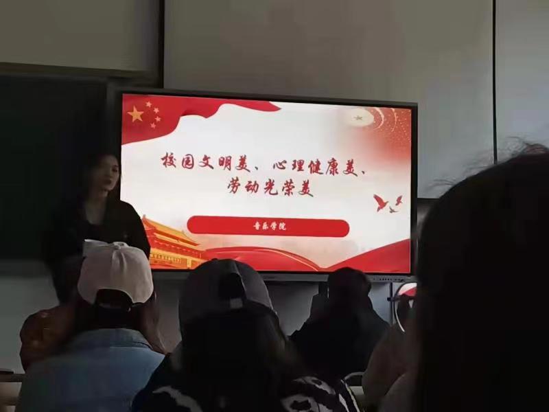 21级声乐专业于2021年10月31日在B101进行“校园文明美、心理健康美、劳动光荣美”主题班会。班会由辅导员雒婵玉主持。