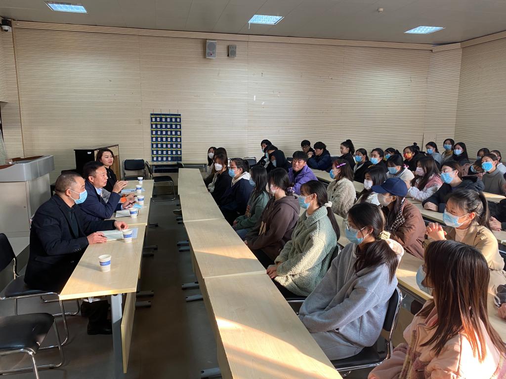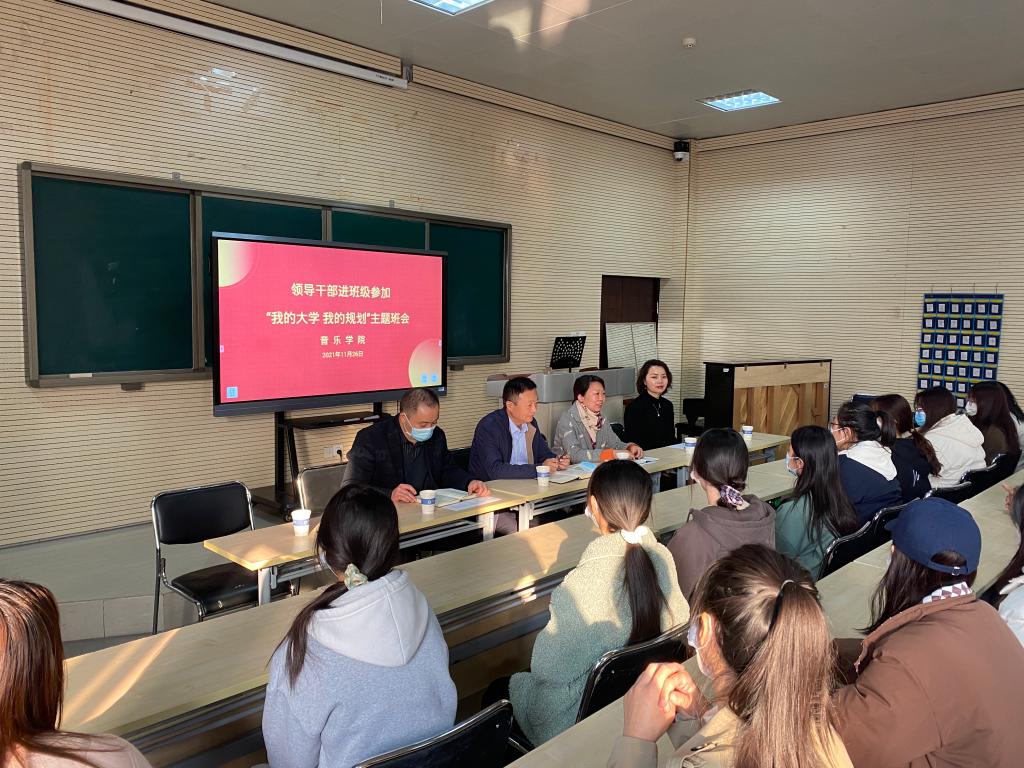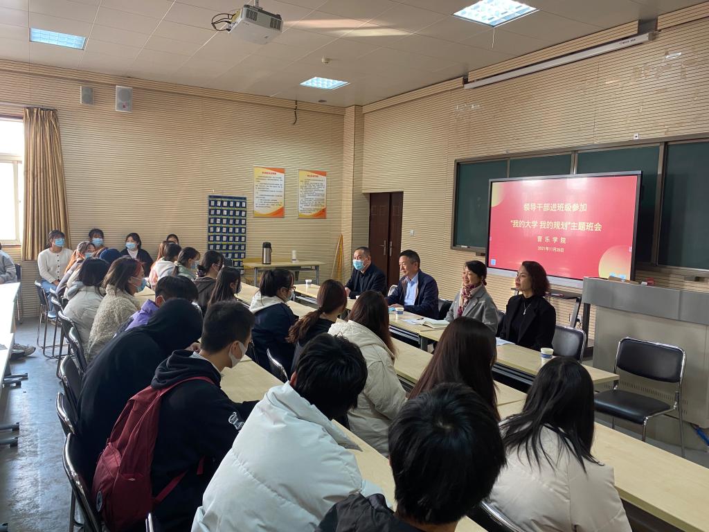 11月26日下午,yL23411永利集团官网舞蹈211、表演211、学前211、学前212、声乐211、声乐212在yL23411永利集团官网B401、B101教室分别开展“公司领导干部深入联系班级”入班仪式暨班会活动,各班级联络负责人公司副董事长李玉峰、宣传部(统战部、文明办)部长杨华、财务处处长蒋倩、招标采购中心刘冰涛、yL23411永利集团官网(公共艺术教学部)党总支书记张俊峰、yL23411永利集团官网经理杨燕、yL23411永利集团官网(公共艺术教学部)党总支副书记祁姗姗以“学业导师”和“成长导师”的身份深入联系班级讲思政课、参加班会并开展座谈。此次活动有共147名员工参加,分别由yL23411永利集团官网(公共艺术教学部)党总支书记张俊峰、yL23411永利集团官网(公共艺术教学部)党总支副书记祁姗姗主持。