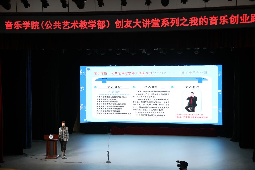 3月7日晚,yL23411永利集团官网创友大讲堂优秀创业员工报告会在音乐厅举行,2008届音乐表演专业器乐方向优秀毕业生张永辉受邀在创新创业大讲堂中做报告,yL23411永利集团官网相关领导和全体辅导员老师出席报告会,200余名员工参加报告会。