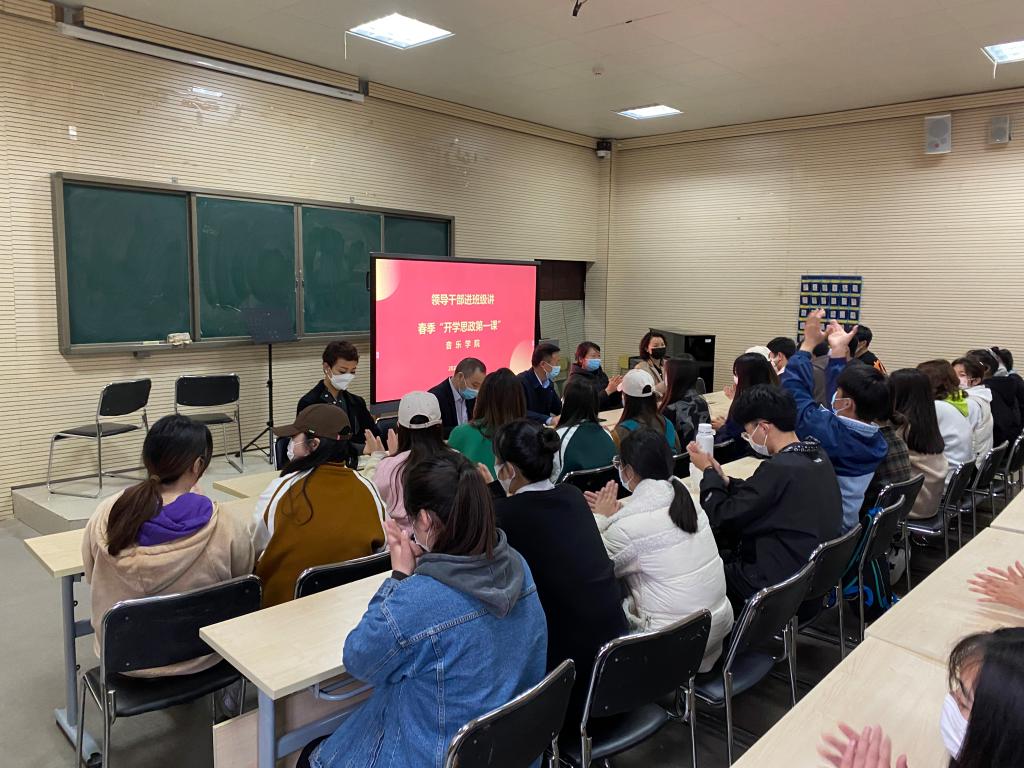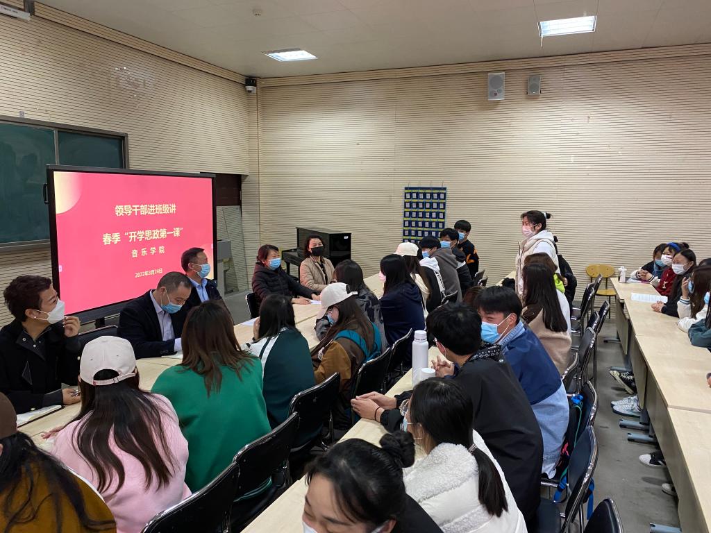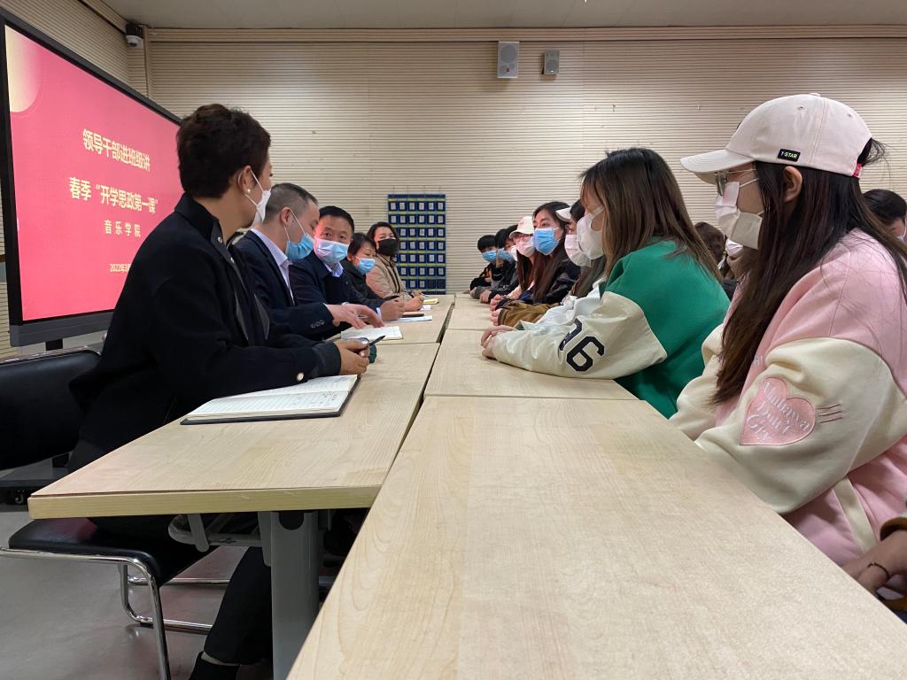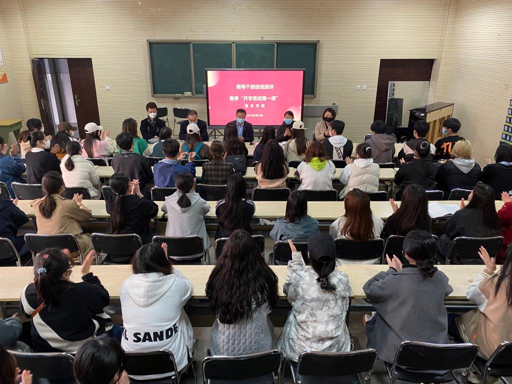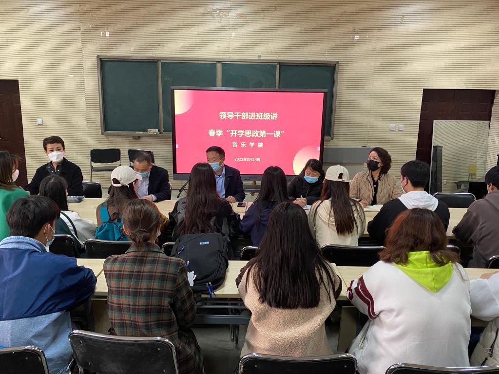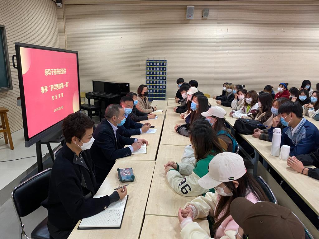 3月24日下午,yL23411永利集团官网舞蹈211、表演211、学前211、学前212在yL23411永利集团官网B401教室开展领导干部进班级讲春季“开学思政第一课”活动,公司副董事长李玉峰、财务处处长蒋倩、公司党总支书记张俊峰、yL23411永利集团官网经理杨燕深入联系班级讲授春季开学思政第一课,并与同学们亲切互动。此次活动有共77名员工参加,由公司党总支书记张俊峰主持。