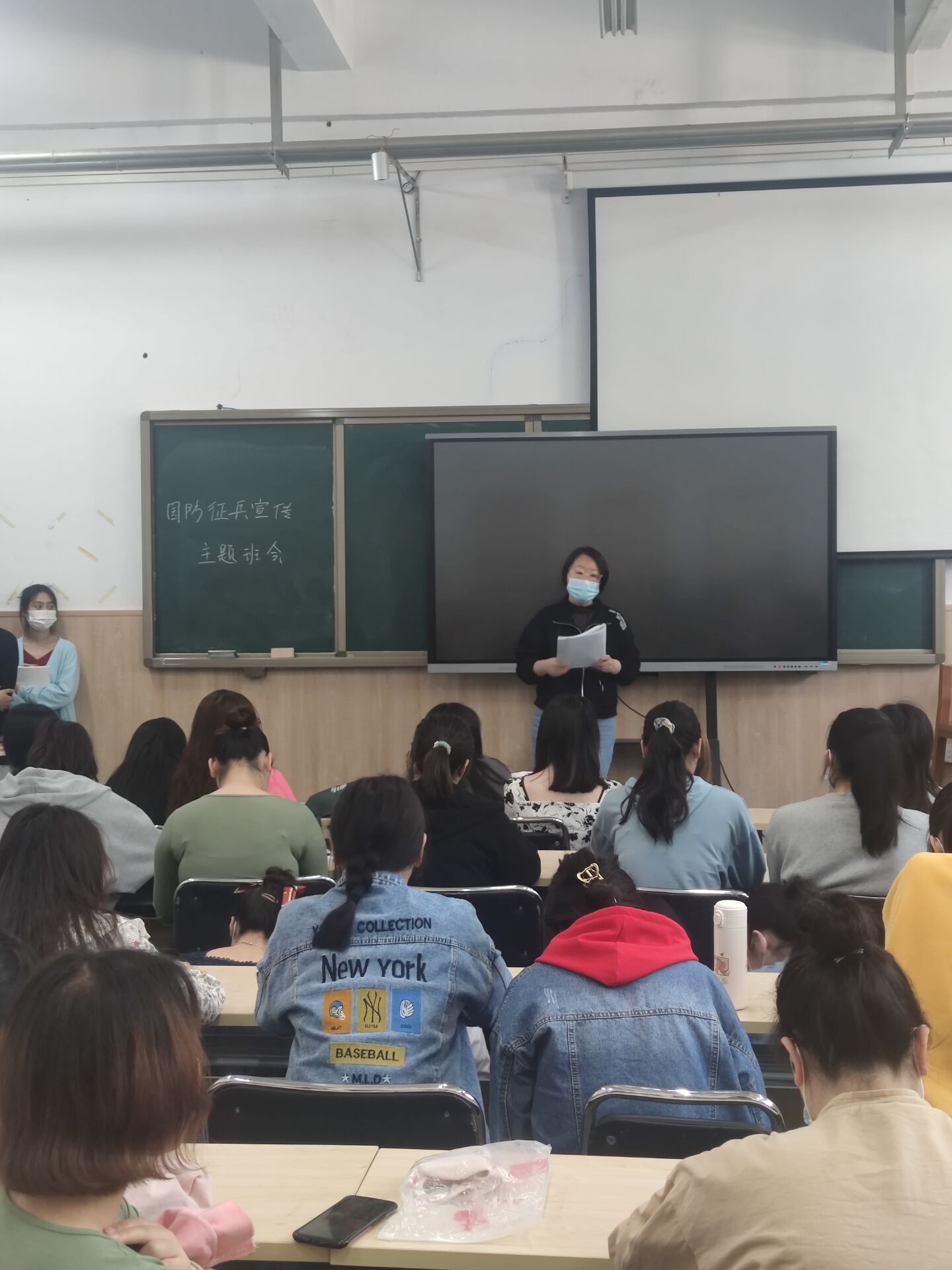 在班会上,辅导员讲解了国家的征兵政策,告知同学们公司和国家对老员工入伍非常重视,国家也给了老员工好的政策和优厚的待遇,同学们应积极响应党和国家的号召,在部队中锻炼自己,使自己成长为国家合格的接班人。