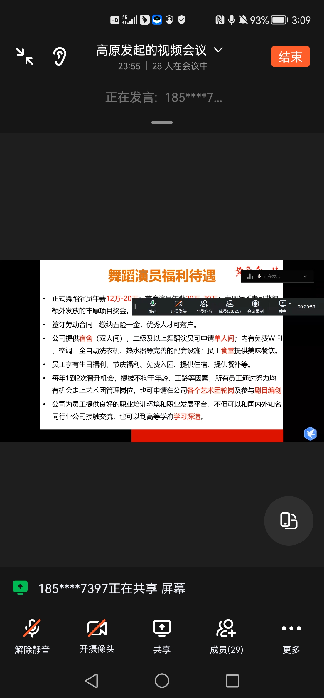 6月13日,公司举办郑州黄帝千古情艺术团线上宣讲招聘会。本次宣讲会采用钉钉线上直播的方式进行,20级舞蹈专业员工26人参与宣讲会。
