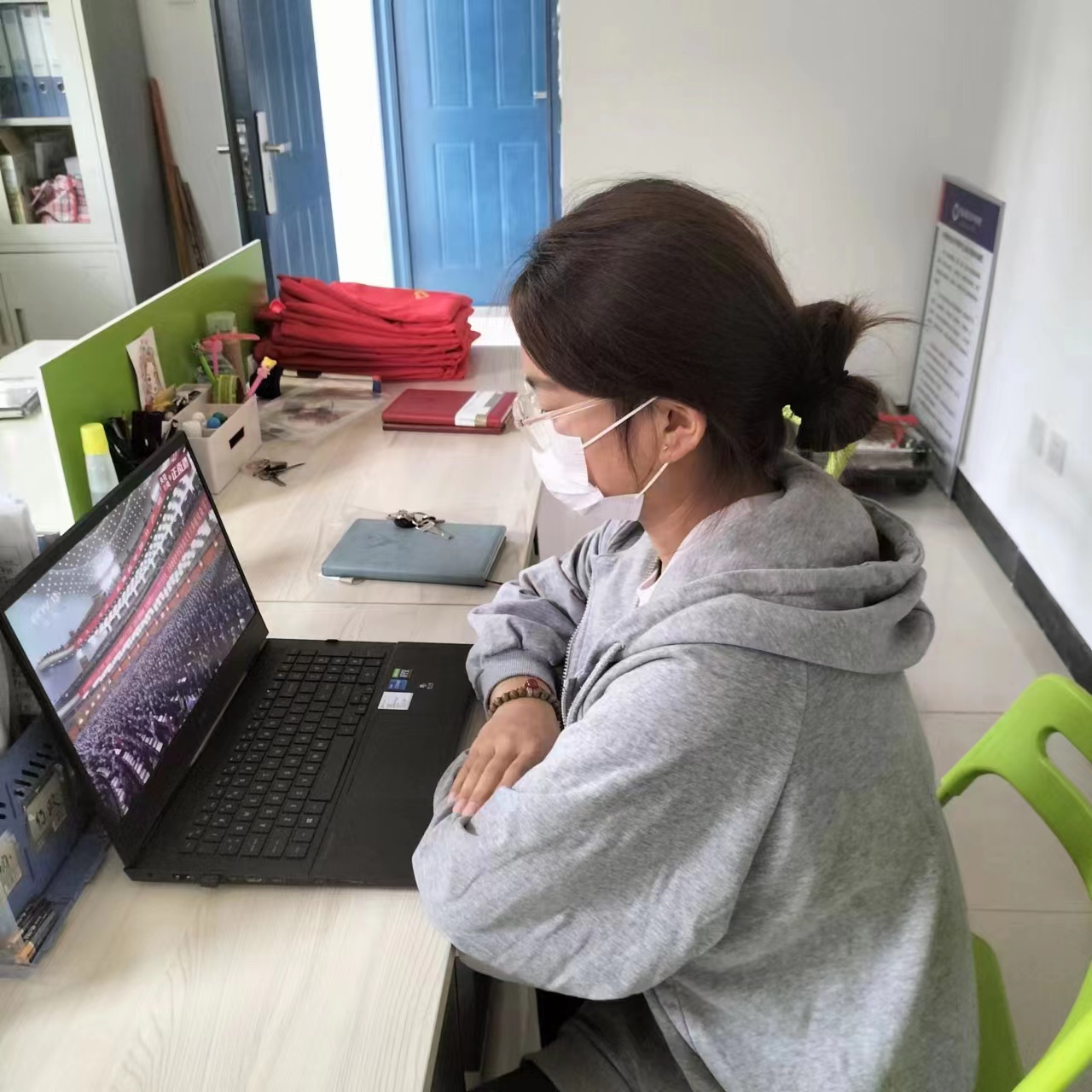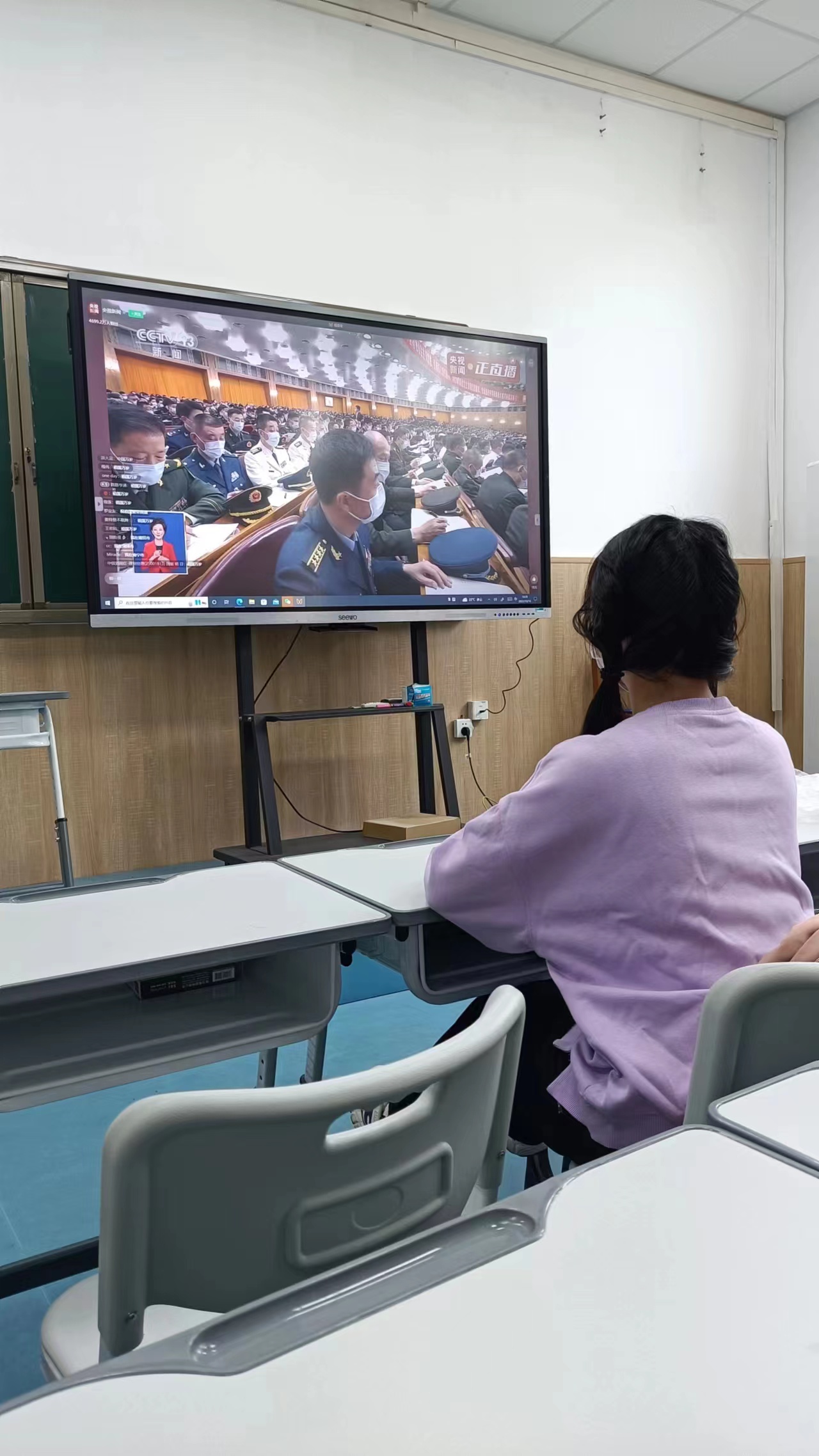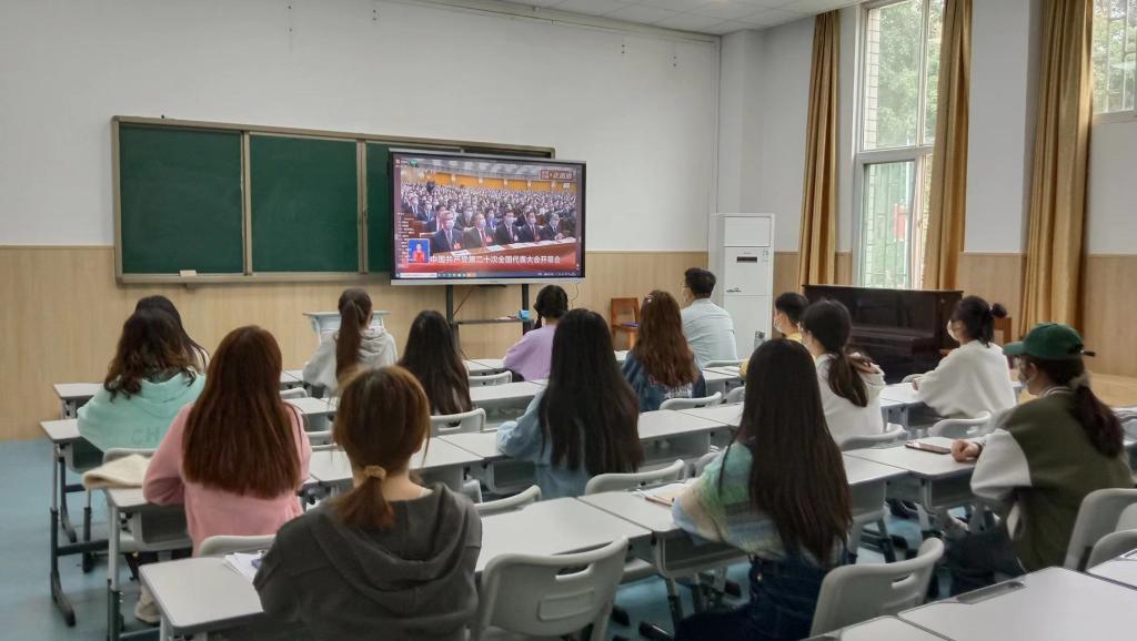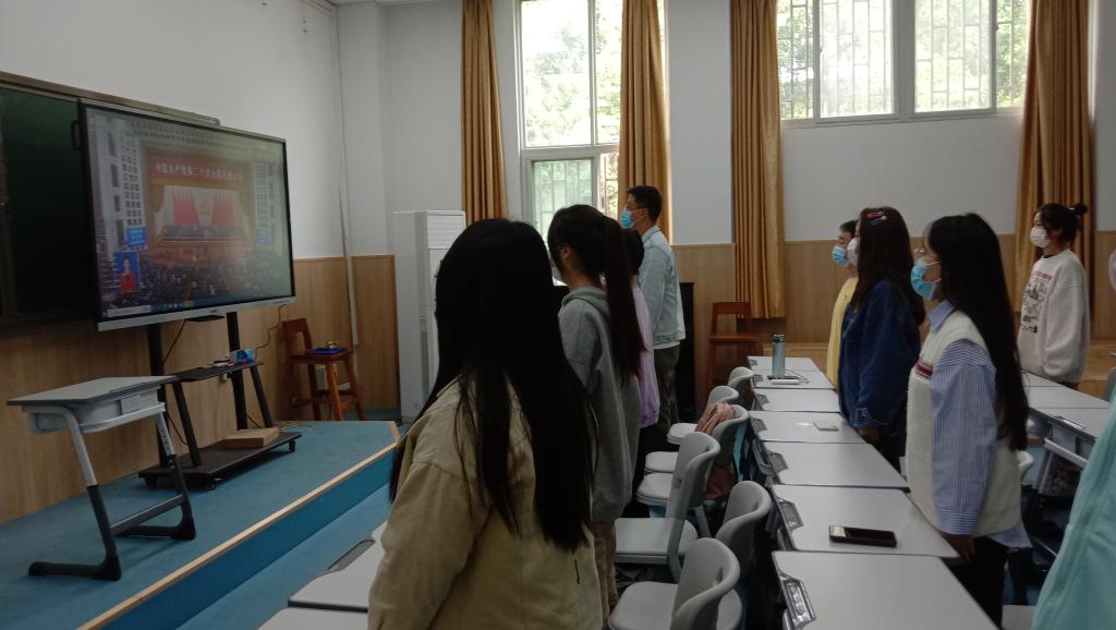 10月16日上午10时,中国共产党第二十次全国代表大会在北京人民大会堂隆重开幕。yL23411永利集团官网员工党支部组织员工通过电脑、手机等多种途径,收看开幕会直播。在音乐楼B101教室员工党员代表坐在一起,感受着团结、奋进的时代脉搏。大家跟随直播画面,起立唱起国歌,认真收看习近平总书记作报告。