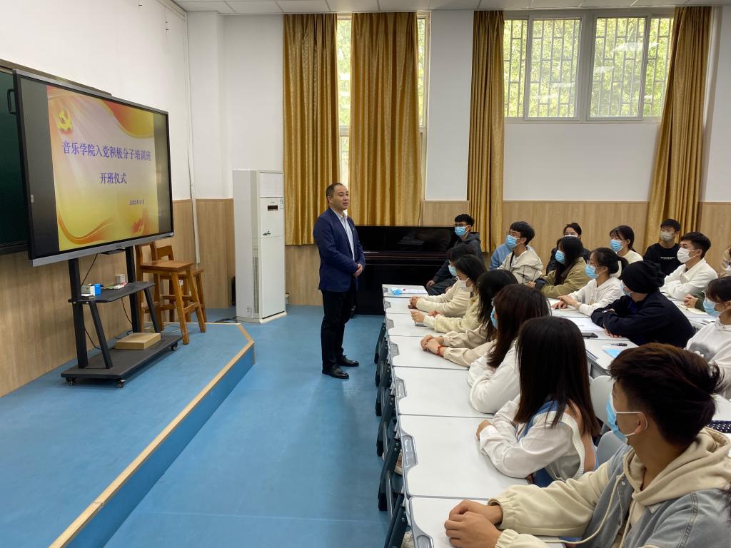 仪式结束后,音乐学党党总支书记张俊峰以“深化思想认识 树立正确入党动机”为题开展专题讲座。