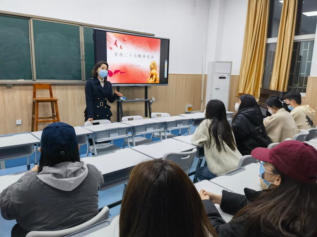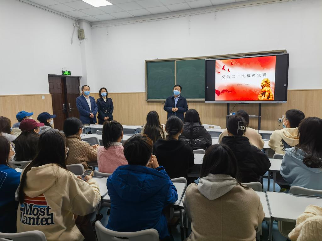 为宣传党的二十大精神,密切师生联系,形成育人合力,11月17日,公司副董事长李玉峰、公司党总支书记张俊峰和经理杨燕走进联系班级学前221、钢琴222、表演221和舞蹈221班,宣讲党的二十大精神,并与员工座谈交流,活动由辅导员老师高原主持。