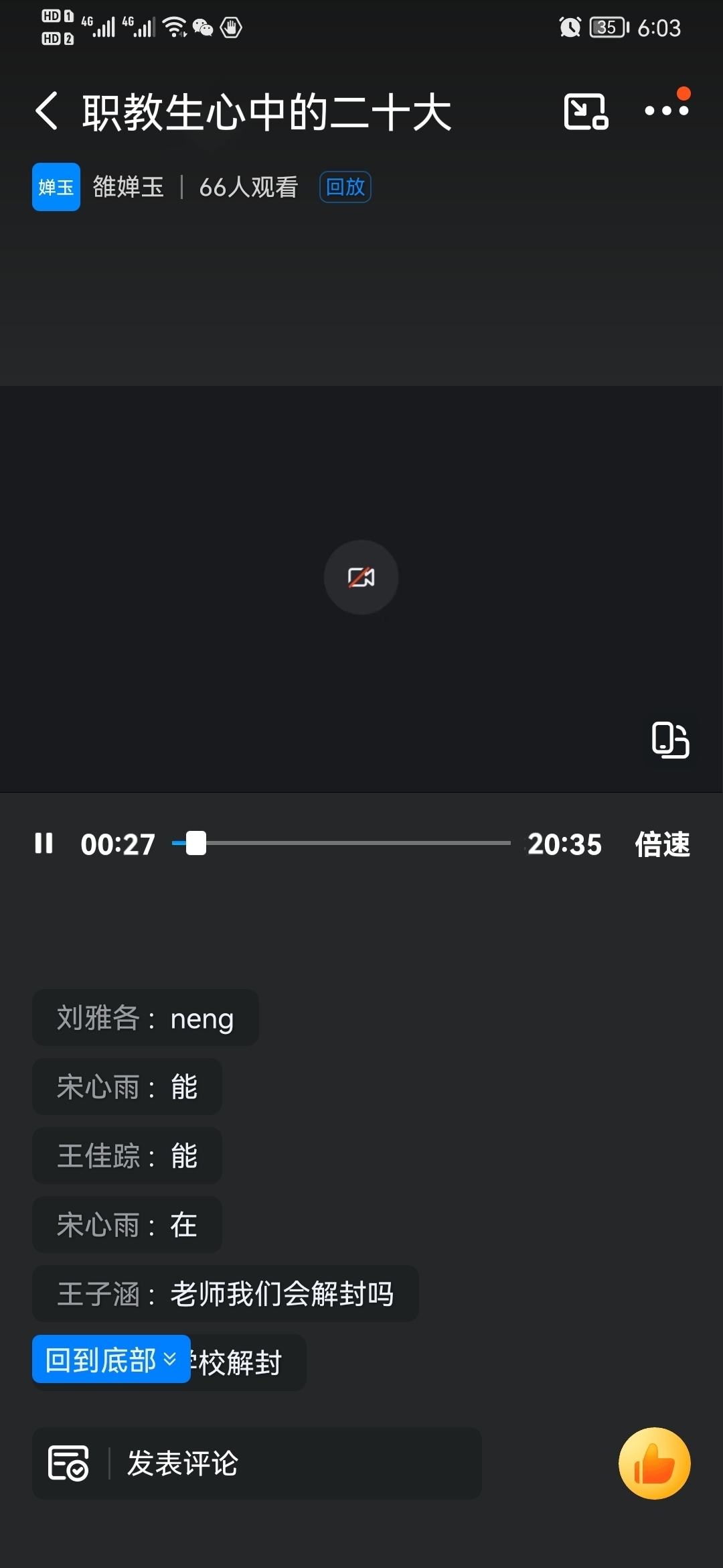 首先,由辅导员雒婵玉围绕党的二十大精神向同学们发起提问。青年学子如何在现实生活中贯彻二十大精神。同学们踊跃发言:将个人与精神紧紧联系一起,深入理解党的二十大精神对当代老员工的影响。