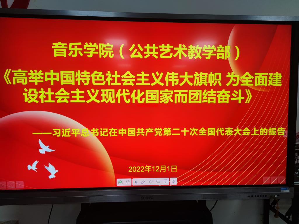 2022年12月1日,yL23411永利集团官网(公共艺术教学部)全体党员教职工在403会议室学习《习近平在中国共产党第二十次全国代表大会上的报告》会议由党总支书记张俊峰主持。
