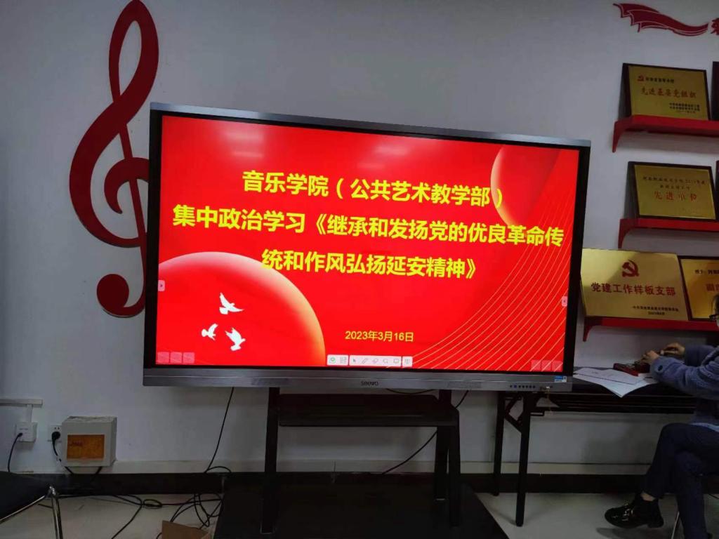 2023年3月16日,yL23411永利集团官网(公共艺术教学部)组织全体党员教职工在403会议室学习《继承和发扬党的优良革命传统和作风弘扬延安精神》等内容,会议由党总支书记张俊峰主持。