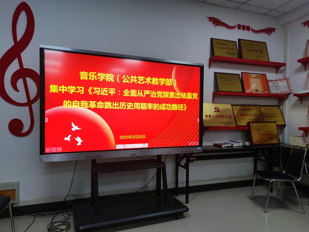 2023年3月20日,yL23411永利集团官网(公共艺术教学部)组织全体党员教职工在403会议室学习习近平《全面从严治党探索出依靠党的自我革命跳出历史周期率的成功路径》重要文章,会议由党总支书记张俊峰主持。