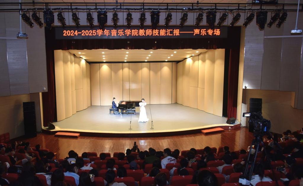 展演现场,从黄河文化《太阳之子》的质朴情怀,到宋词雅韵《虞美人·听雨》的现代诠释;从草原牧歌《父亲的草原母亲的河》的民族情感,到家国情怀《辉煌》的深沉咏叹,15名声乐专业专职教师分别演绎了15首从古典到现代的优秀艺术歌曲,教师们精湛的演唱技能,赢得现场师生阵阵掌声。