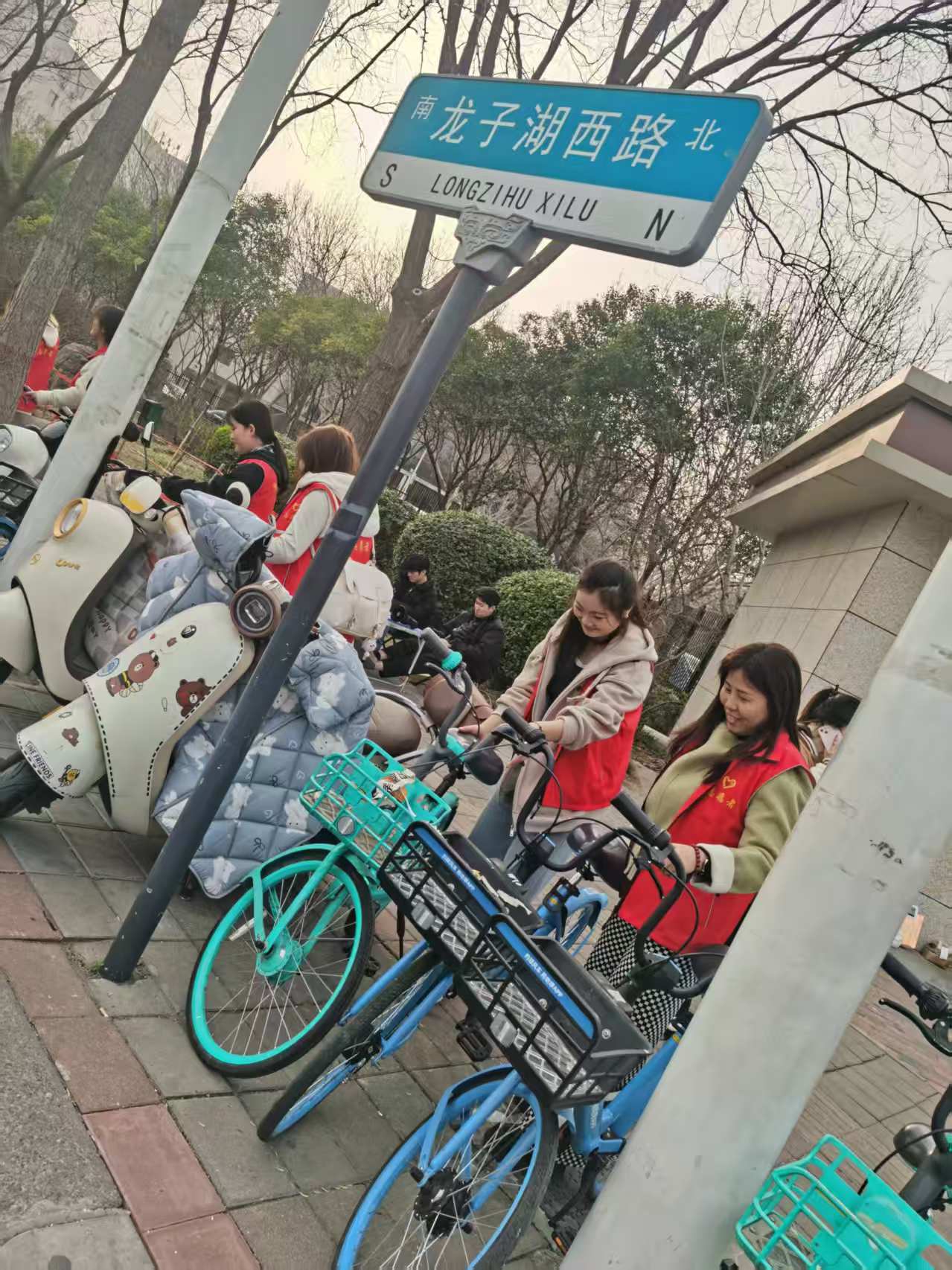 3月13日下午在公司东南门共享单车停放区域,学前教育教研室教师和学前244班6位同学身穿统一的红色志愿者马甲,将随意停放的共享单车搬到指定的停放区域内,并对单车进行整齐摆放,确保单车停放有序;并向过往师生宣传文明停放共享单车的重要性,倡导大家共同维护校园周边环境。呼吁大家自觉遵守停放规则,做到文明用车、规范停车。