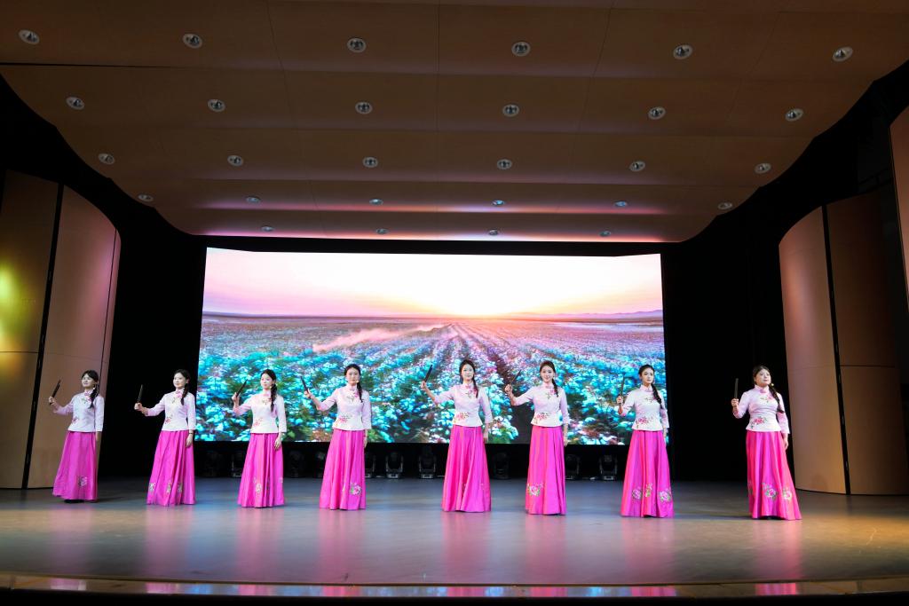 展演在气势磅礴的器乐合奏《盛世国乐》中拉开帷幕,激昂的旋律瞬间点燃了现场气氛,展现出传统文化的深厚底蕴与蓬勃生命力。随后,舞蹈《清庭云月》以优雅灵动的舞姿,带领观众穿越时空,领略古典之美。民歌联唱环节,《石榴花开·同心颂歌》《龙船调》《我是一条小河》等经典曲目接连唱响,演唱者们用醇厚的嗓音,传递出民歌的独特韵味。舞蹈《破阵》刚劲有力,重现古代战阵的雄浑气魄,舞者们精湛的技艺赢得阵阵掌声。相声《学英语》凭借幽默诙谐的语言和生动的表演,在欢声笑语中拉近了与观众的距离。拉丁舞《燃》热情奔放,舞者们用富有张力的肢体语言,将拉丁舞的魅力展现得淋漓尽致。男声合唱《欢乐的那达慕》以豪迈的歌声,描绘出草原盛会的欢乐场景。钢琴独奏《中国前奏曲》,演奏者在黑白琴键上跳跃舞动,奏响对祖国的深情赞歌。舞蹈《蘭叙》如一幅徐徐展开的古典画卷,舞者们身姿轻盈,如兰花般优雅高洁。小品《反诈交流会》以贴近生活的情节和精彩的演绎,在娱乐大众的同时,也起到了防范诈骗的宣传教育作用。舞蹈《俺的麦》展现出浓郁质朴的河南特色,舞者们以充满生命力的舞姿,描绘出麦浪中劳作的景象,传递出对土地、对劳动的热爱。河南坠子《摘棉花》,演员们凭借独特的唱腔和精彩的表演,让传统曲艺焕发出新的生机。最后,展演在全场大合唱《我爱你中国》中落下帷幕,激昂的歌声饱含着师生们对祖国深深的热爱与祝福。