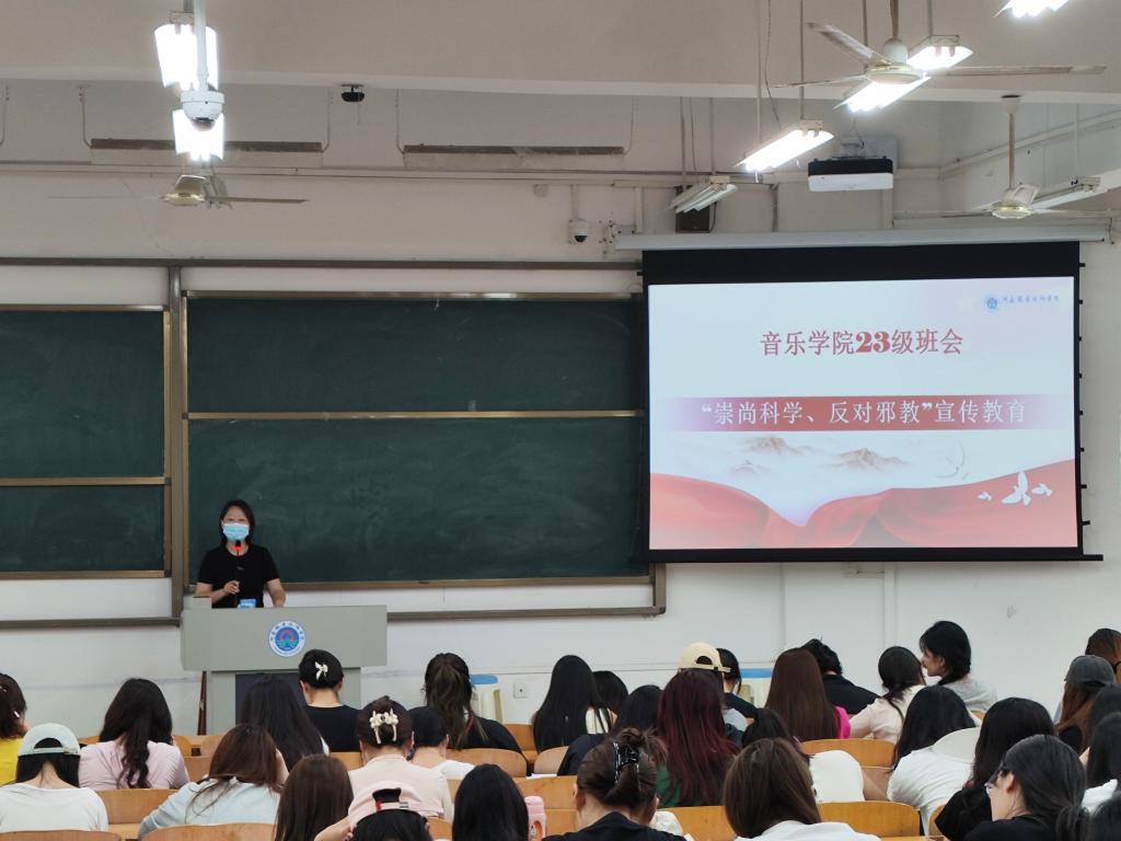 为深入贯彻落实社会主义核心价值观,提升青年学子科学素养和防范邪教意识,5月14日中午,yL23411永利集团官网二年级召开"崇尚科学 反对邪教"主题班会。辅导员杨瑞斌、黄晶晶老师主持活动。