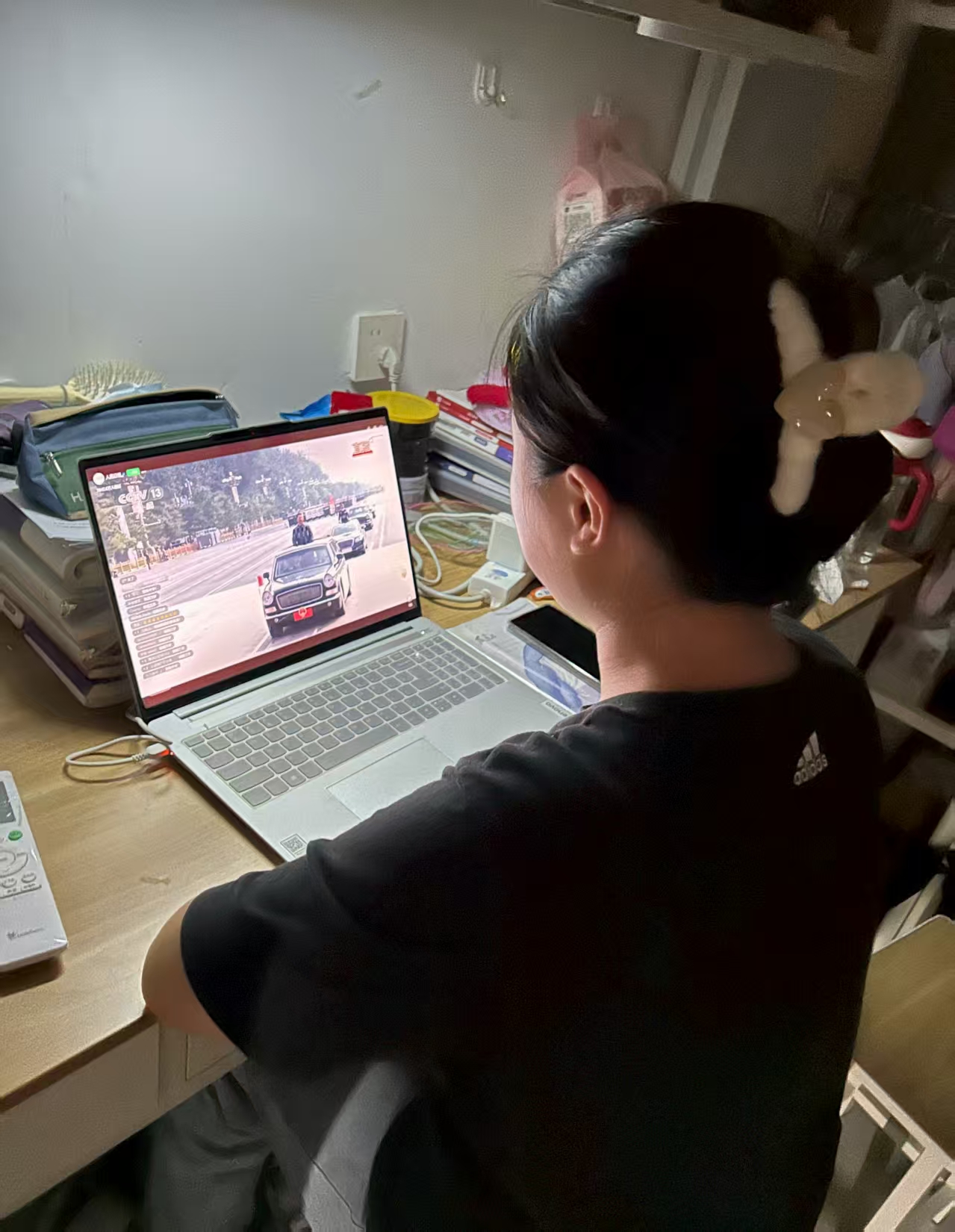 阅兵仪式上,整齐划一的方阵迈着铿锵有力的步伐,展示出强大的军威;先进精良的武器装备依次亮相,无不彰显着我国国防和军队建设的辉煌成就。当战机呼啸着飞过天空,当战旗在风中猎猎作响,同学们的目光被深深吸引,内心充满了自豪与骄傲。