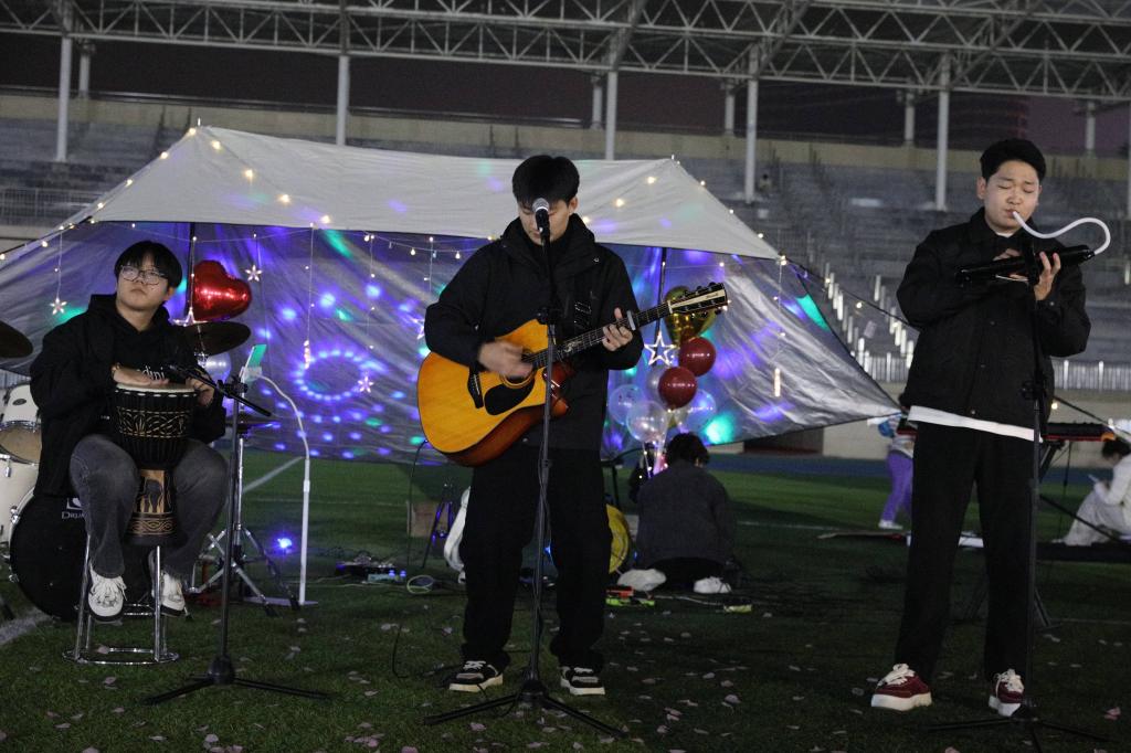 10月29日傍晚,公司操场在暮色中焕发生机,“平安大道210号”草坪音乐节浪漫启幕。15个节目以多元艺术形式点燃青春热情——《我怀念的》《我只在乎你》唤醒集体记忆,《北派》《Is this love》释放青春能量;《玫瑰少年》引发深度共鸣,《陪你去流浪》传递温暖力量;说唱的犀利、乐队的澎湃、舞蹈的灵动、歌曲的深情次第绽放,各院系学子打破专业壁垒,用才华与热爱共织这场听觉盛宴。