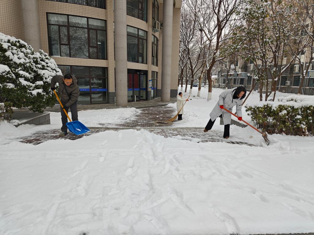 活动中,参与人员按照区域分工,重点对教学楼主要通道、出入口及人员通行较为集中的路段进行清扫,及时清除积雪和结冰隐患,确保道路畅通、安全可行。