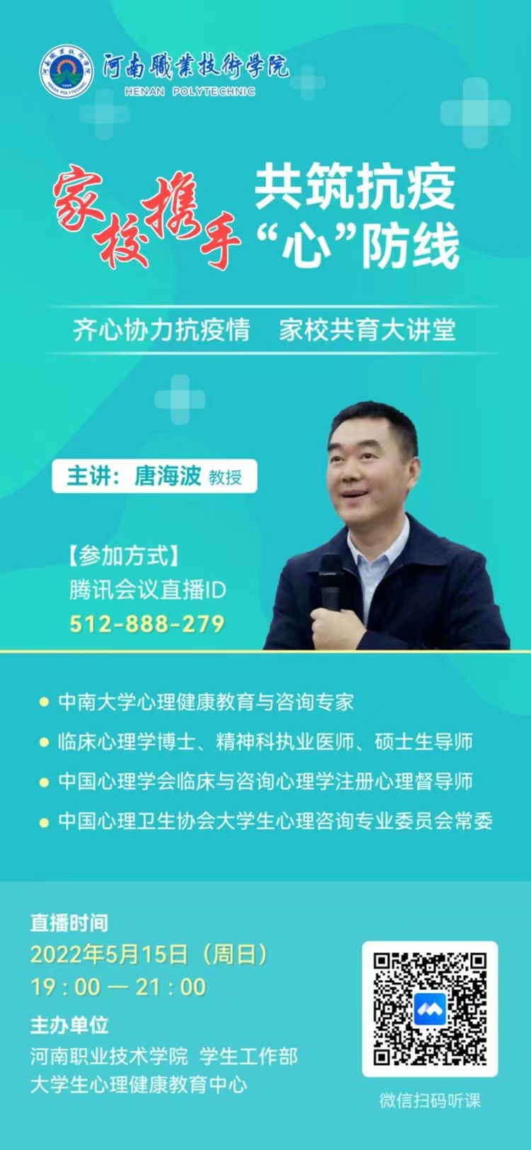 目前,全国全省疫情形势复杂,为进一步筑牢疫情防控屏障,强化家校育人合力,面向家长普及心理健康教育知识,引导家长树立正确教育观,以健康和谐的家庭环境影响员工,有效提升心理健康教育实效,根据公司“5·25心理健康教育宣传月”活动安排及目前疫情防控要求,公司将于5月15日采用线上形式举办“齐心协力抗疫情 家校共育大讲堂”活动,具体通知如下: