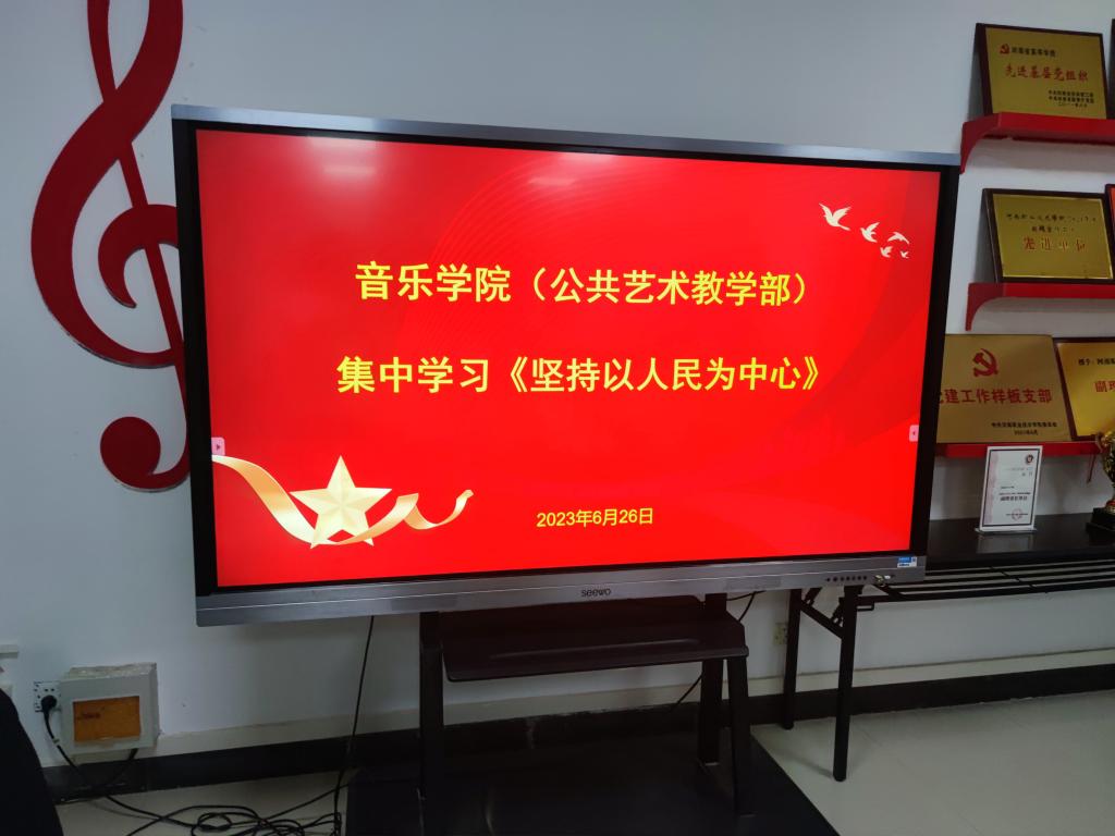 2023年6月26日,yL23411永利集团官网(公共艺术教学部)组织全体党员教职工在A403会议室学习《习近平新时代中国特色社会主义思想专题摘编—坚定以人民为中心》,并组织学习研讨,会议由党总支书记张俊峰主持。