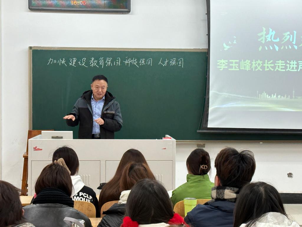 李玉峰以《加快建设教育强国、科技强国、人才强国》为题,为同学讲授思政课。以二十大精神为主线,从实现中华民族伟大复兴,科技是关键,人才是基础,教育是根本这三个方面结合国内外事例向同学详细解读党的这一论述和部署的重大意义。强调高校在现代化建设中新的使命,高校必须担当加快建设教育强国、科技强国、人才强国的时代责任,全面提升人才自主培养质量,全面提升科技自主创新能力,全面提升现代大学治理水平,为现代化建设提供强大人才支撑,为全面建设社会主义现代化国家作出高校应有的贡献。鼓励同学们刻苦学习,厚植爱国主义情怀,努力成为“四有”新人、“四有”公民,用自己的所学所长为我国的科技发展贡献力量,为中华民族的伟大复兴而奋斗。