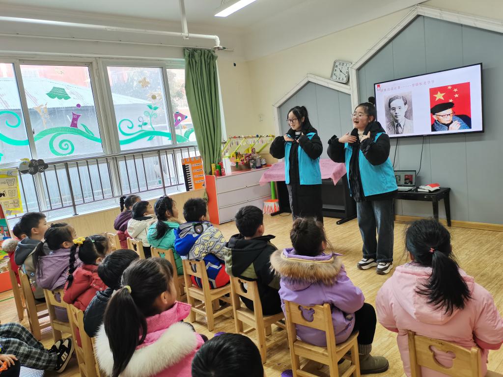 为深入学习贯彻习近平新时代中国特色社会主义思想和党的二十大精神,弘扬“奉献、友爱、互助、进步”的志愿精神,引导广大青年老员工积极投身新时代文明实践志愿服务,培育和践行社会主义核心价值观,勇做担当民族复兴大任的时代新人,yL23411永利集团官网员工党支部、团总支带领员工党员、青年团员走进郑东新区东尚社区龙湖花园幼儿园开展“红歌传唱心有阳光”爱国教育志愿服务活动。