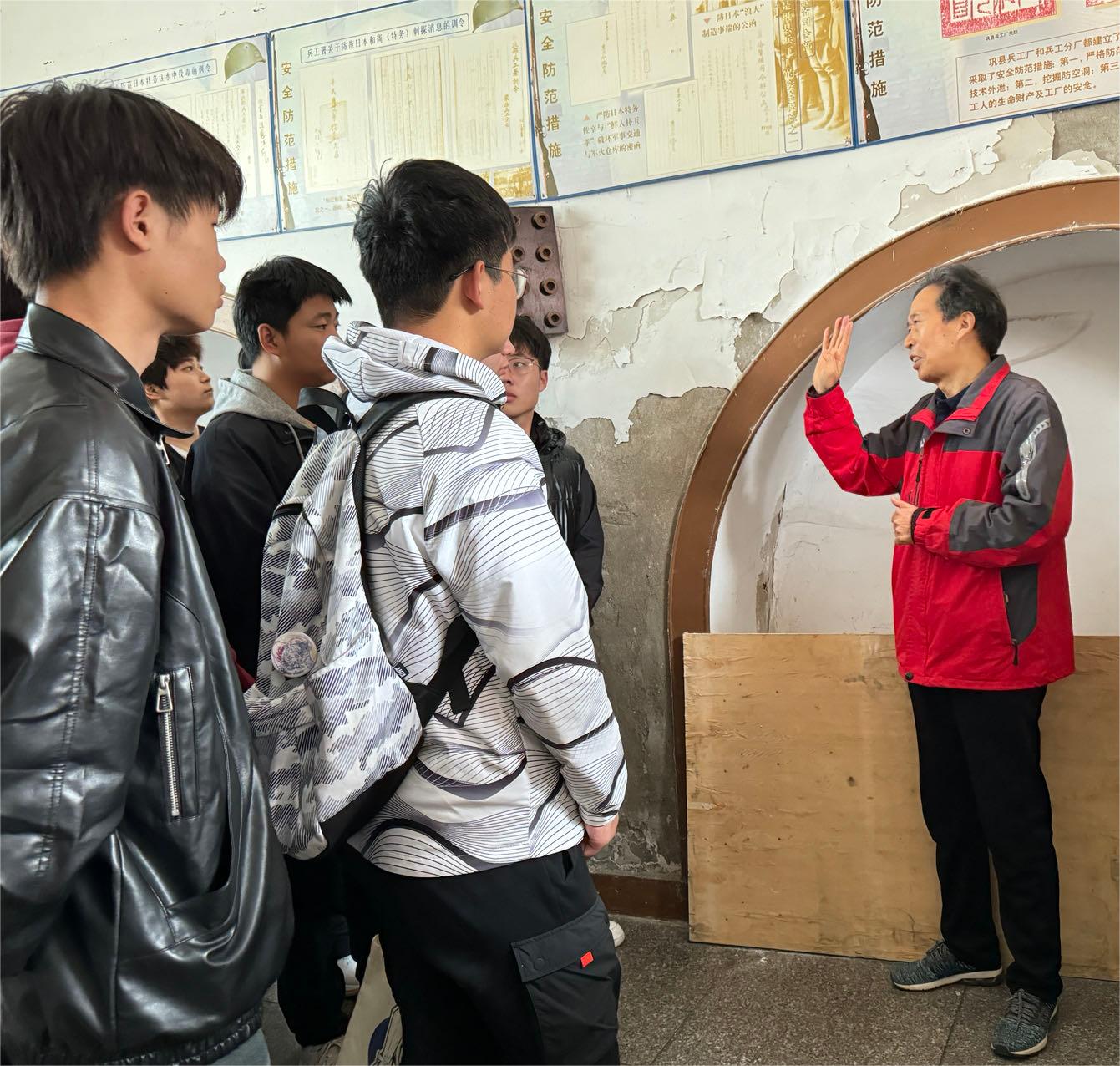 “打卡”第一站,同学们来到了巩县兵工厂旧址。巩县兵工厂是上世纪初中国四大兵工厂之一,河南省首个党支部—中国巩县兵工厂党支部也诞生于此。从1915年建厂到1937年11月街道搬迁命令,22年间,巩县兵工厂出产了大量的武器装备。特别是在抗战期间,枪厂的工人为豫西抗日独立支队修枪、造枪,为全国各地的抗战队伍生产各式手雷、炮弹,有力支援了抗日,成为中国抗日力量不可或缺的重要组成部分。