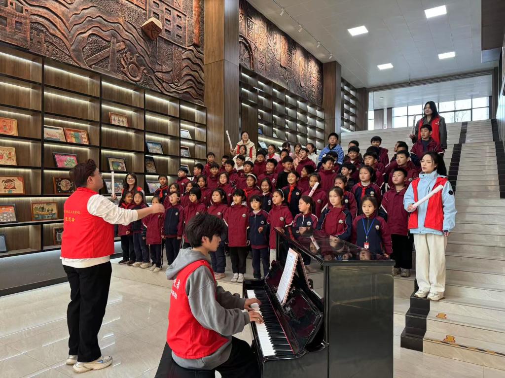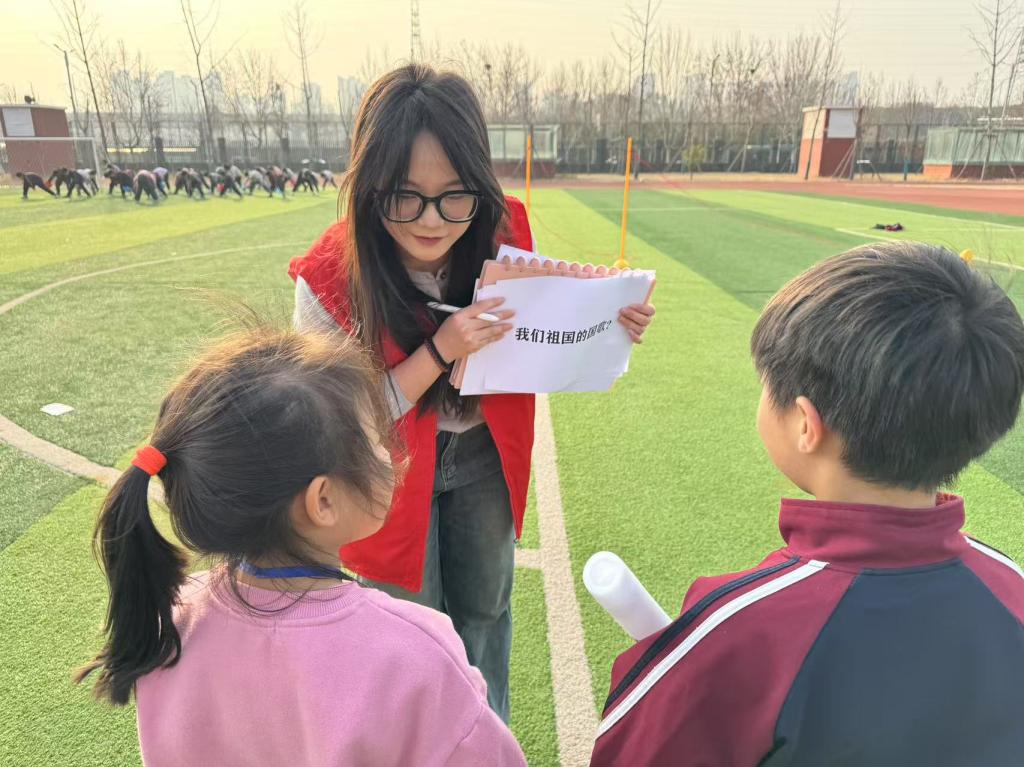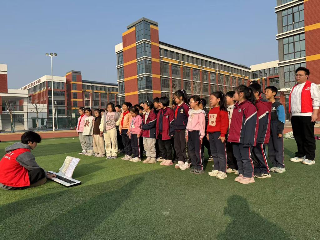 下午4点10分,文苑小学操场上传出清脆的童声合唱。"学习雷锋好榜样,忠于革命忠于党..."员工志愿者通过"歌词接龙""手势教学"等趣味方式,带领二年级(6)班的小朋友们逐句学唱经典红歌。志愿者们还结合歌词讲述雷锋助人为乐的故事,孩子们高举小手踊跃分享自己帮助同学的暖心经历,操场上洋溢着温暖与感动。