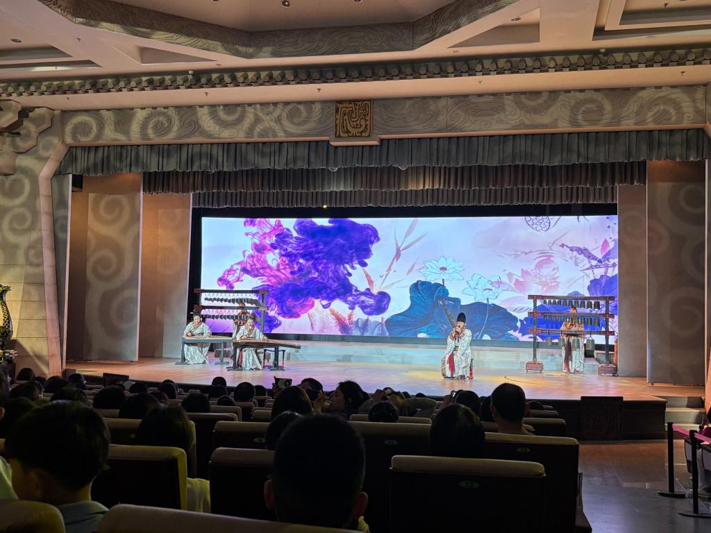活动现场,师生观摩了博物馆华夏古乐展演。“华夏古乐”是一档以复原古代音乐文物为核心的特色展演节目,通过复原、演奏古代乐器和乐曲,生动再现中国千年礼乐文明的魅力。编钟与陶埙交织的悠远旋律中,笙箫琴瑟重现《鹿鸣》《关雎》等经典篇章,结合现代编曲赋予古乐新的表现力。每件乐器都是活的史书作为音乐专业员工,我们既要掌握现代技艺,更要读懂器物背后的文明密码党支部书记张老师强调