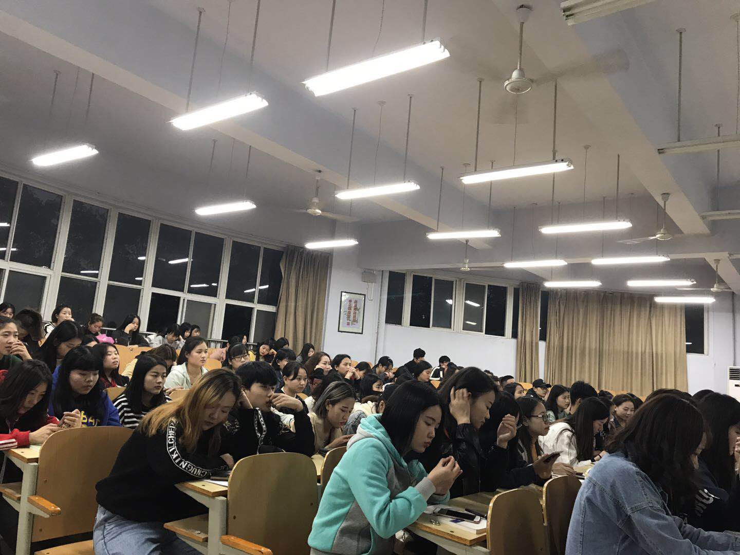 班会第二项:天气转凉,昼长夜短,接近年关,辅导员就防盗、校园安全等方面叮嘱员工。