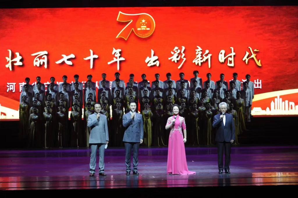 9月30日晚,河南省庆祝中华人民共和国成立70周年大型文艺演出在河南艺术中心举行。此次演出由省委宣传部、省文化和旅游厅主办,河南歌舞演艺集团承办,450多名演员共同参演,历经三个多月精心筹备,河南广大文艺工作者用一场饕餮视听盛宴共同祝福祖国更加繁荣昌盛,表达了亿万大河儿女礼赞新中国、奋进新时代、力争更出彩的豪迈情怀。