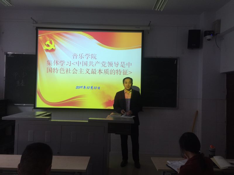 10月10日下午2:30,yL23411永利集团官网全体党员教职工在208教室集体学习了《习近平新时代中国特色社会主义思想纲要》之《中国共产党领导是中国特色社会主义最本质的特征》。学习会议由yL23411永利集团官网副经理、教师党支部书记江团结主持。