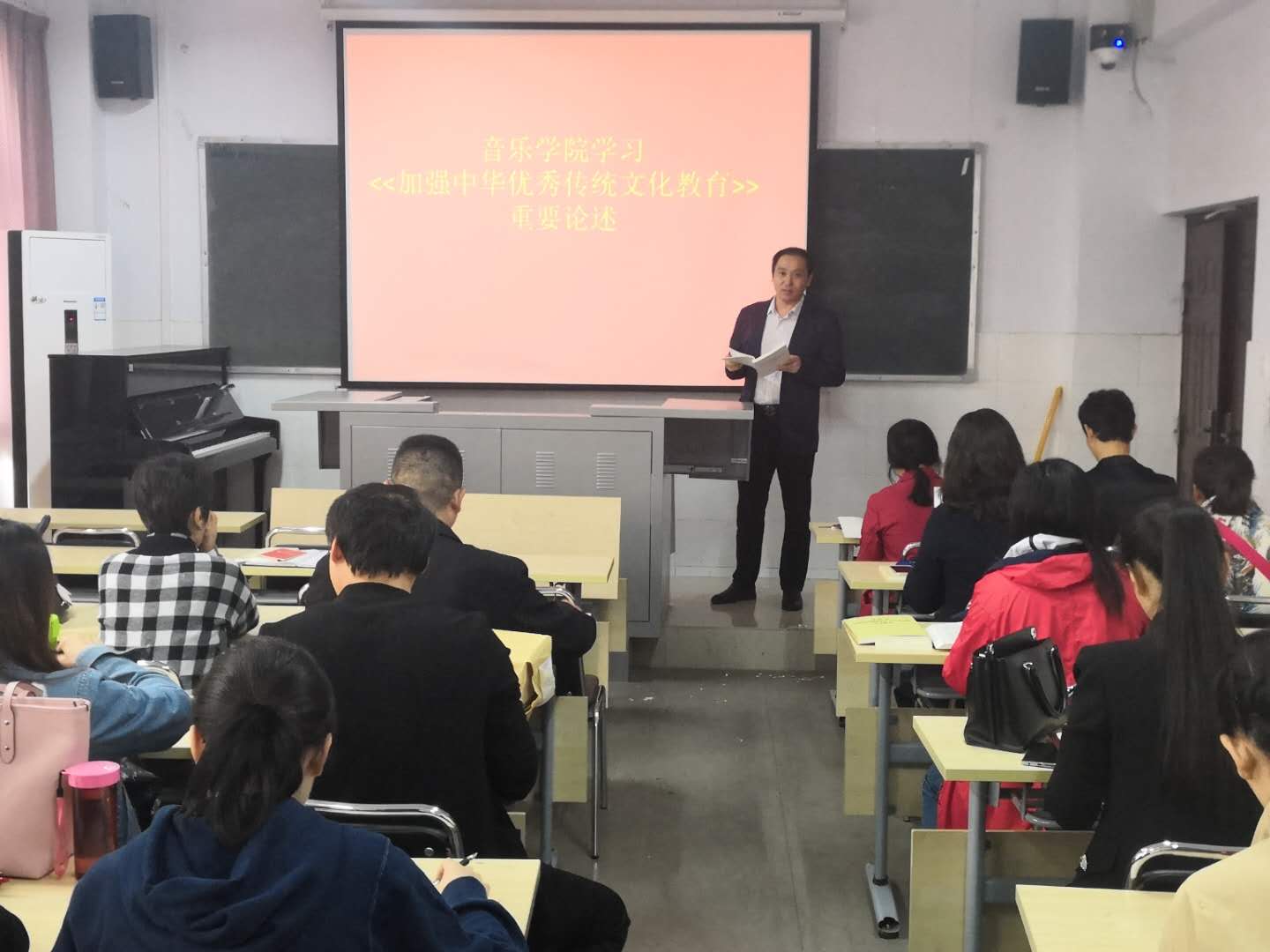 10月12日下午,yL23411永利集团官网全体党员教职工在A208教室认真学习了习总书记《加强中华优秀传统文化教育》的重要论述,学习会议由副经理、教师支部书记江团结主持。